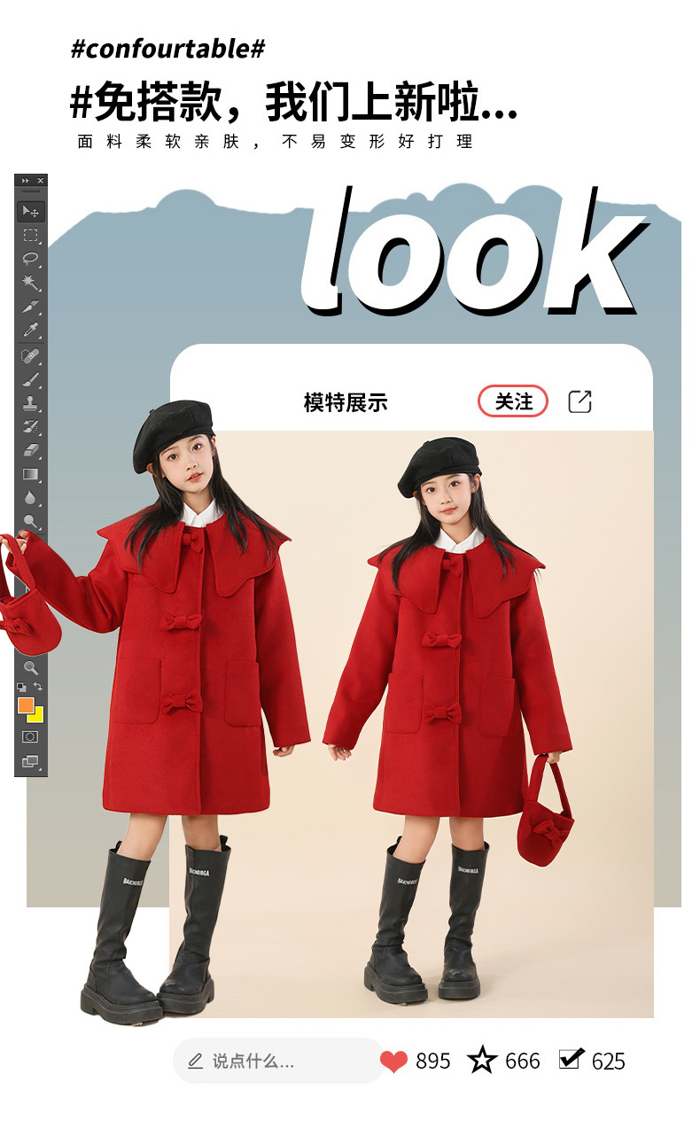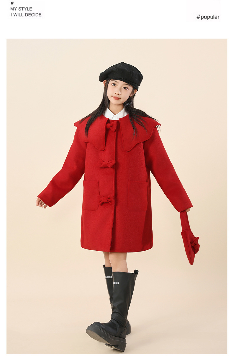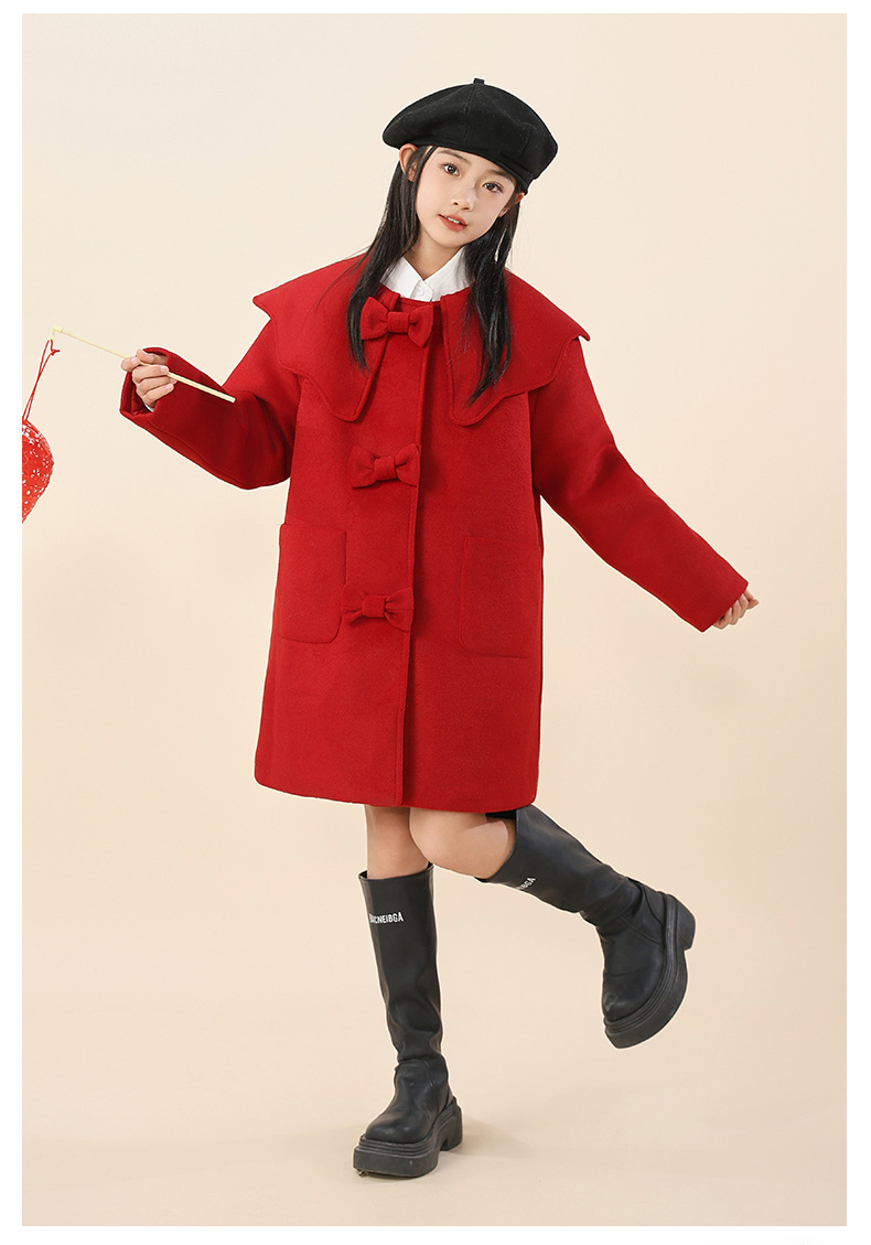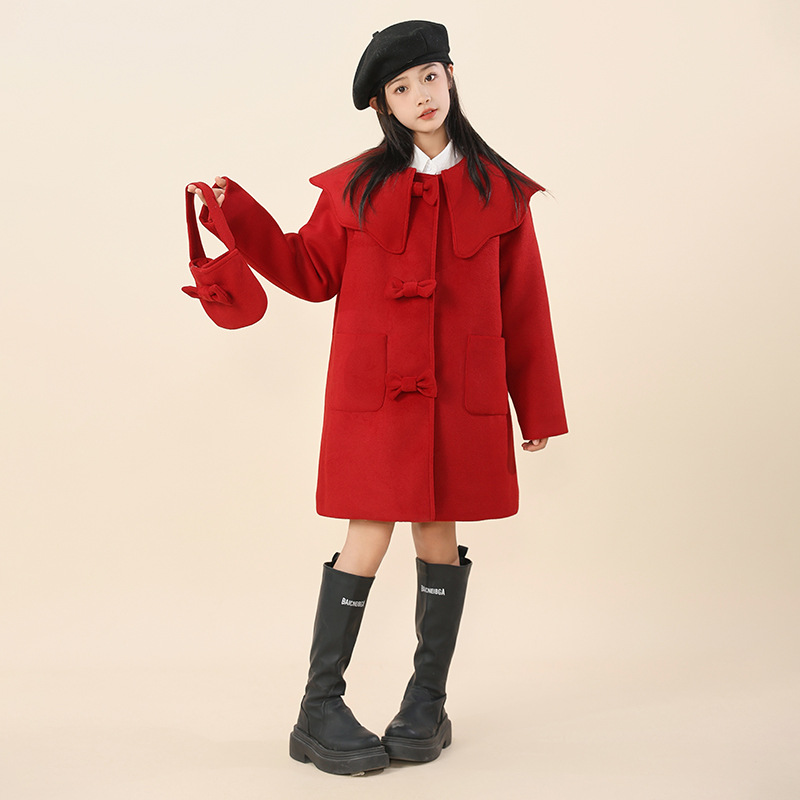 여아용 모직 가을 · 겨울면 자켓 큰 어린이 플러스 사이즈 느슨한 설날 붉은 가운 중학교스토어 가기