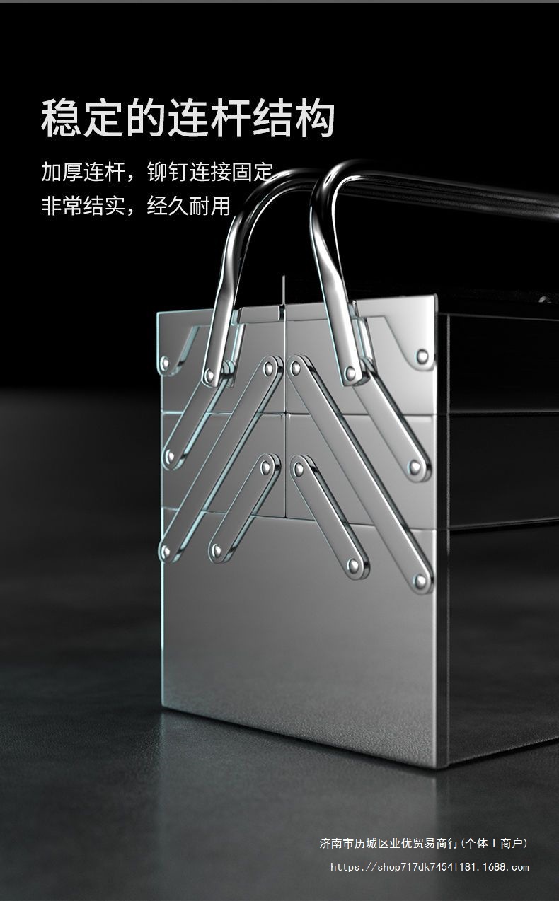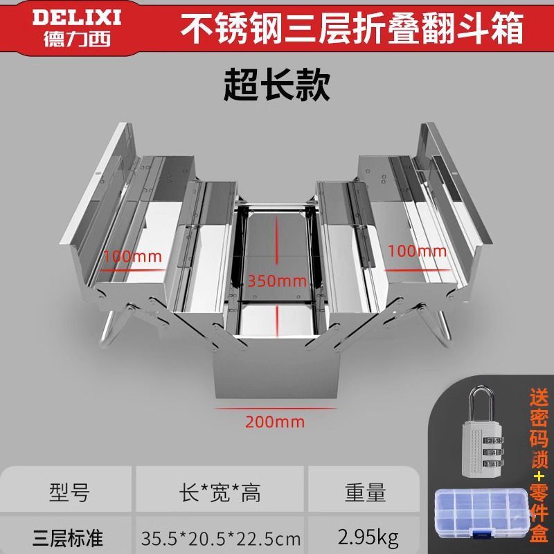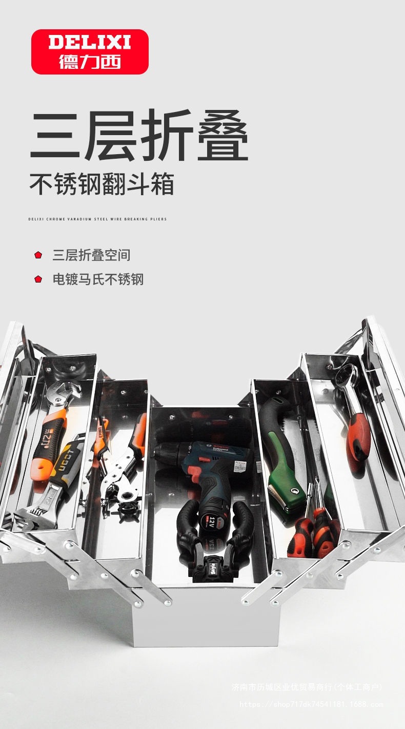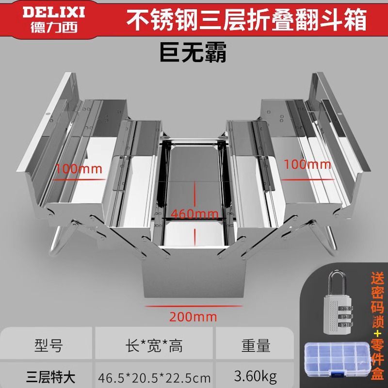 Delixi 스테인레스 스틸 도구 상자 대형 3 층 접이식 가정용 자동차 휴대용 철 저장 상자 산업 등급스토어 가기