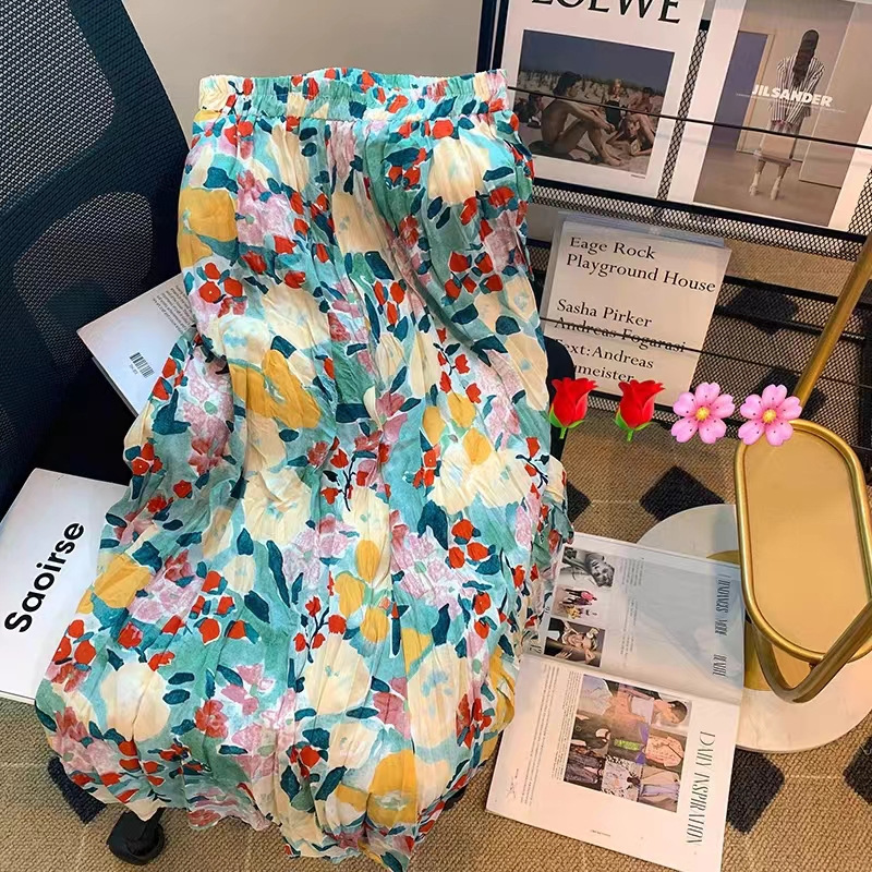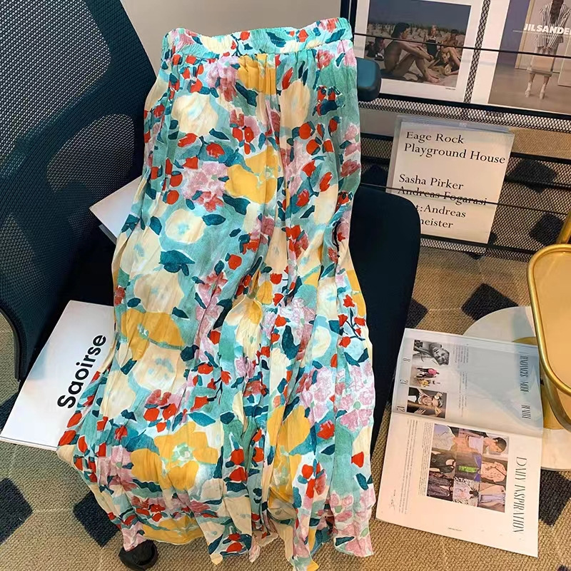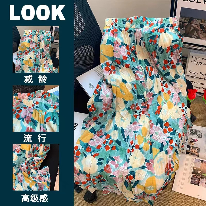 레트로 유화에 숨겨진 부드러운 요정 꽃 중간 길이 스커트
