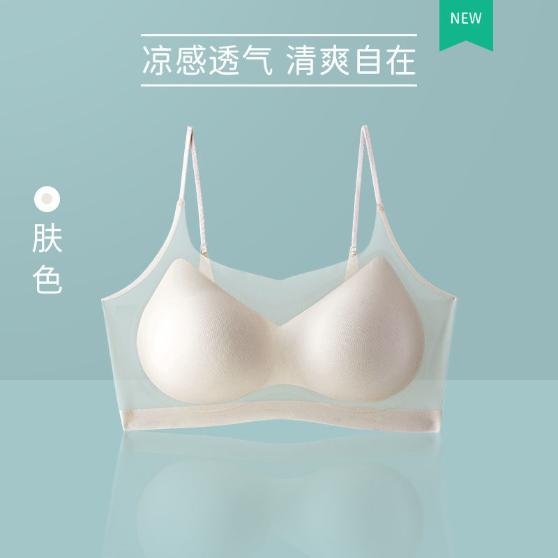 여름 얇은 슬링 아름다운 뒤 속옷 여성의 traceless 초박형 대형 가슴은 작은 여름 브래지어 작은 가슴이 모여집니다.