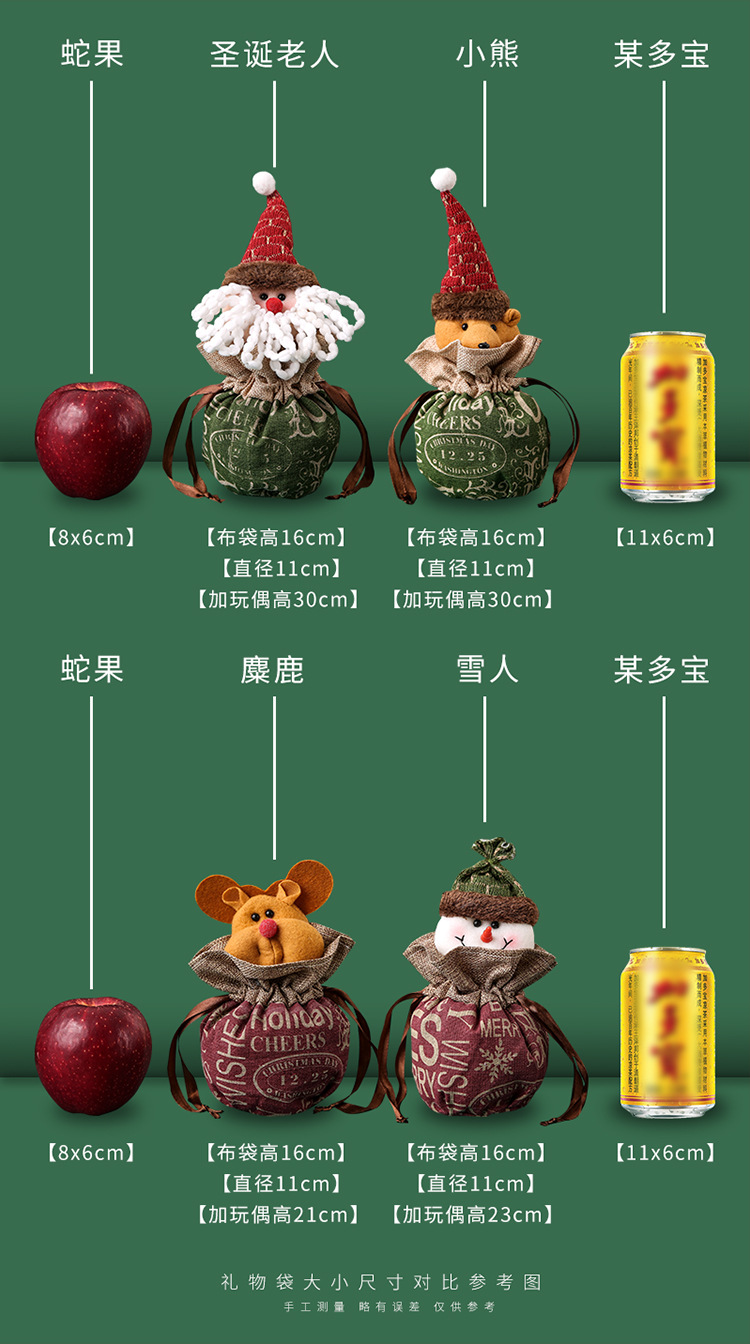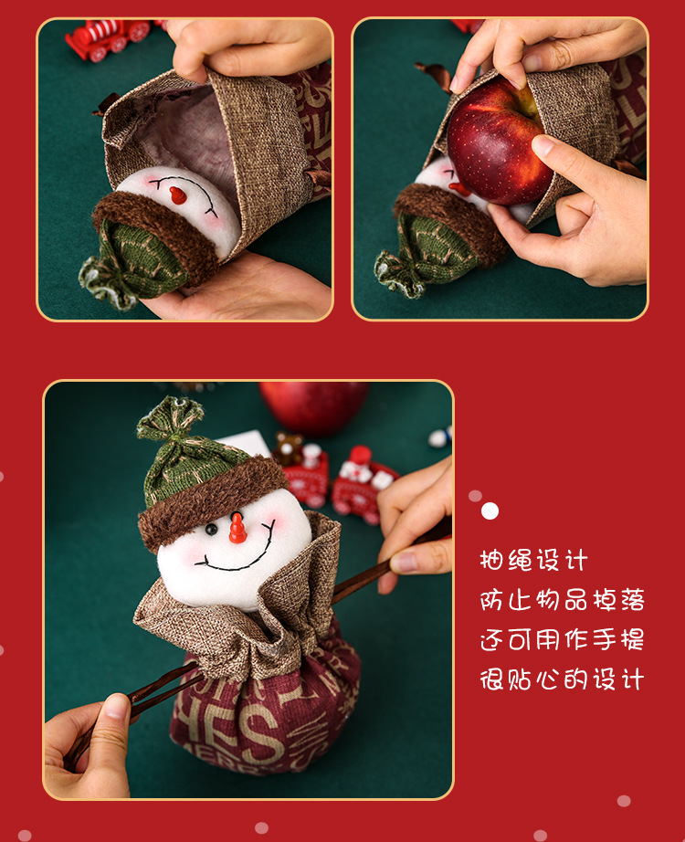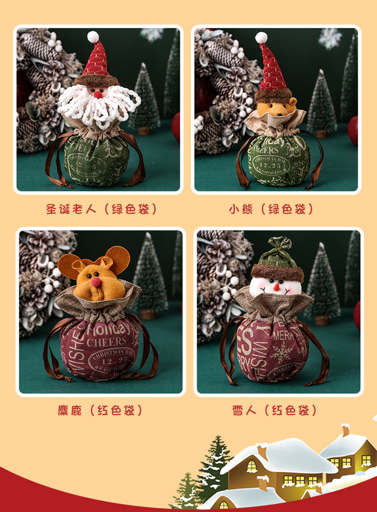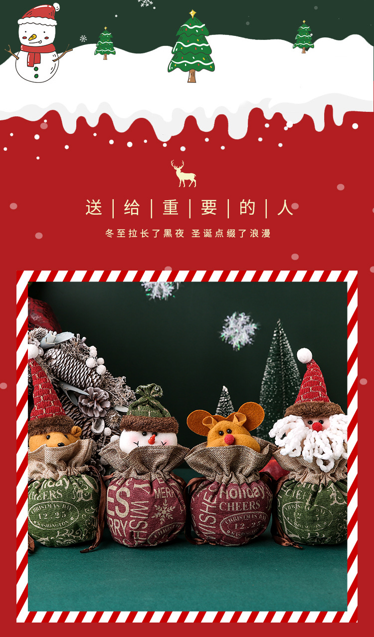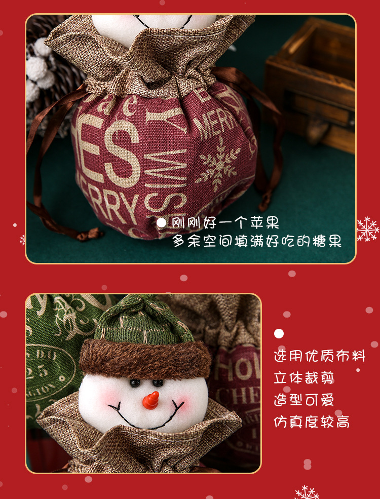 귀여운 크리스마스 장식 린넨 영어 drawstring 사과 가방 어린이 만화 노인 눈사람 사슴 사탕 선물 가방