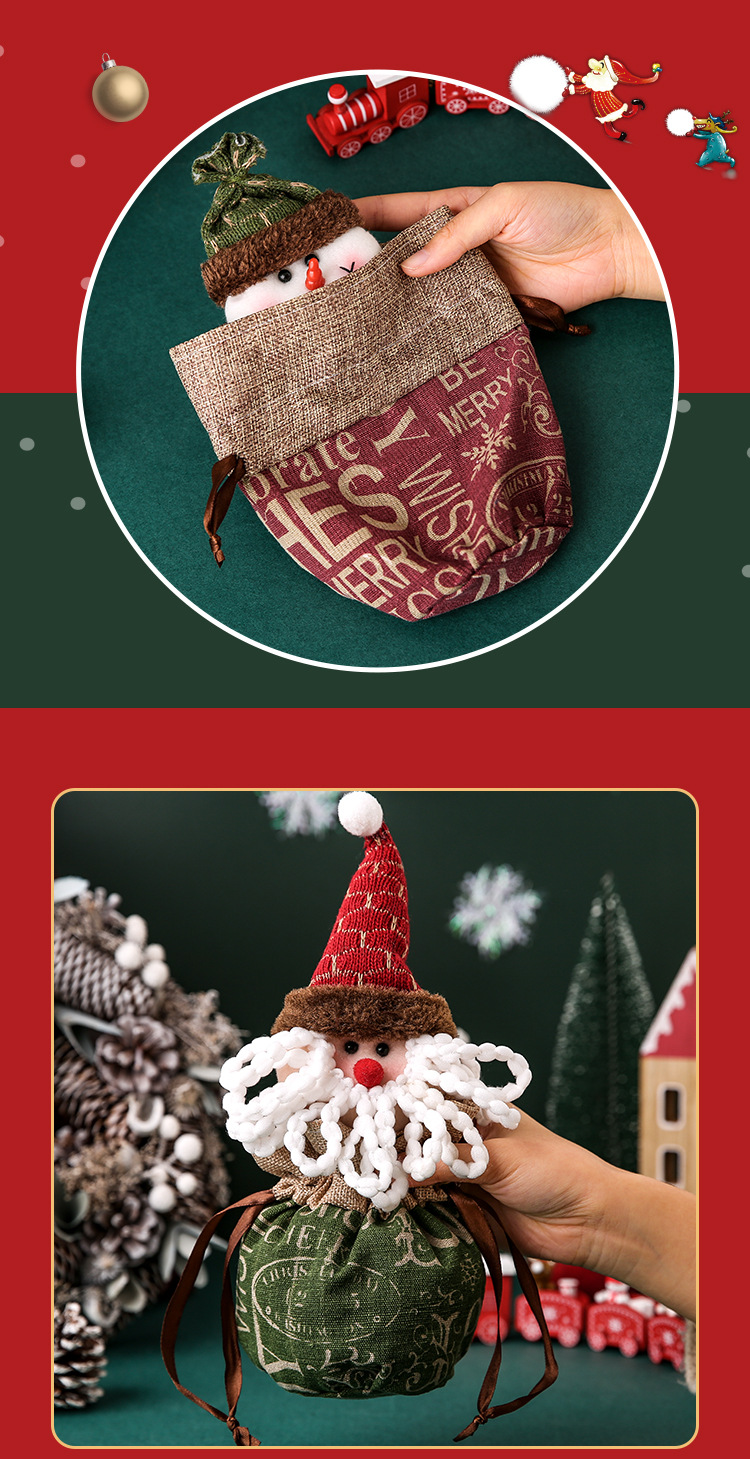 귀여운 크리스마스 장식 린넨 영어 drawstring 사과 가방 어린이 만화 노인 눈사람 사슴 사탕 선물 가방스토어 가기