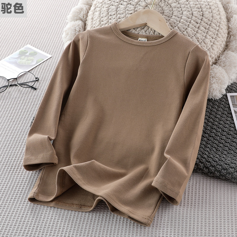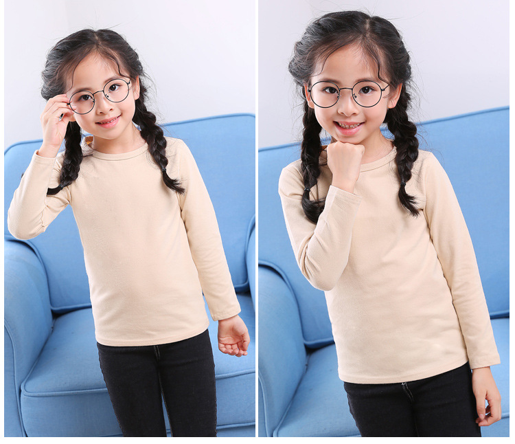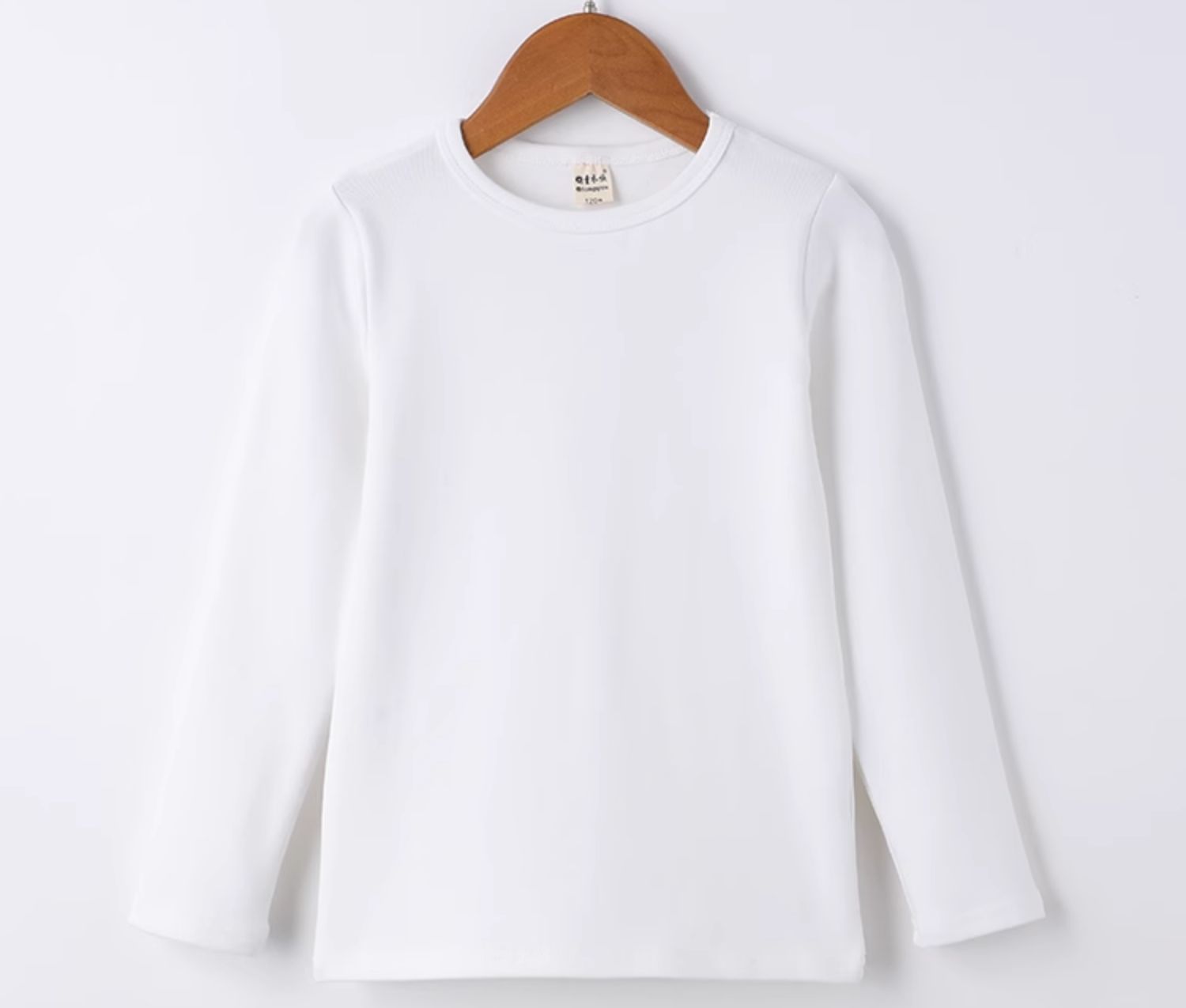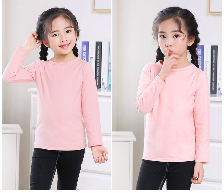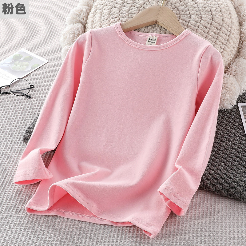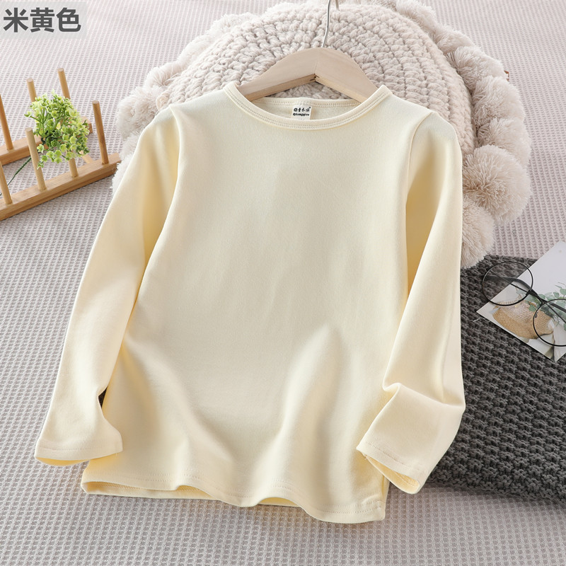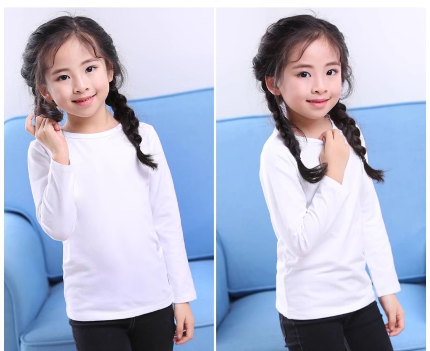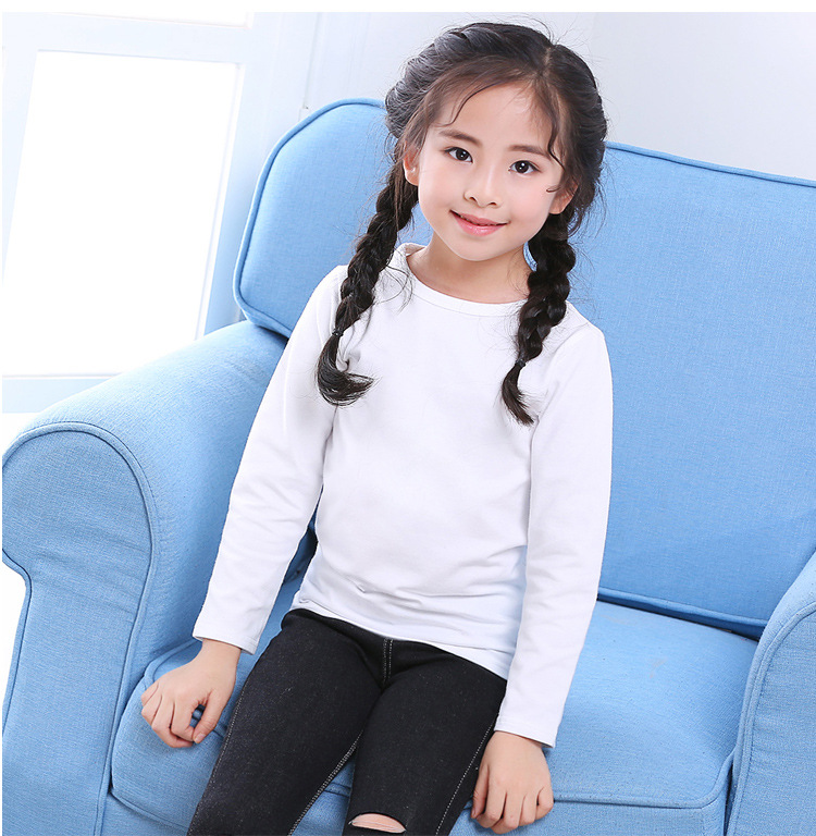 2024 가을과 겨울은 아기의 내베이스 셔츠 코튼 긴 소매 티셔츠 소녀 화이트 크루 넥 탑