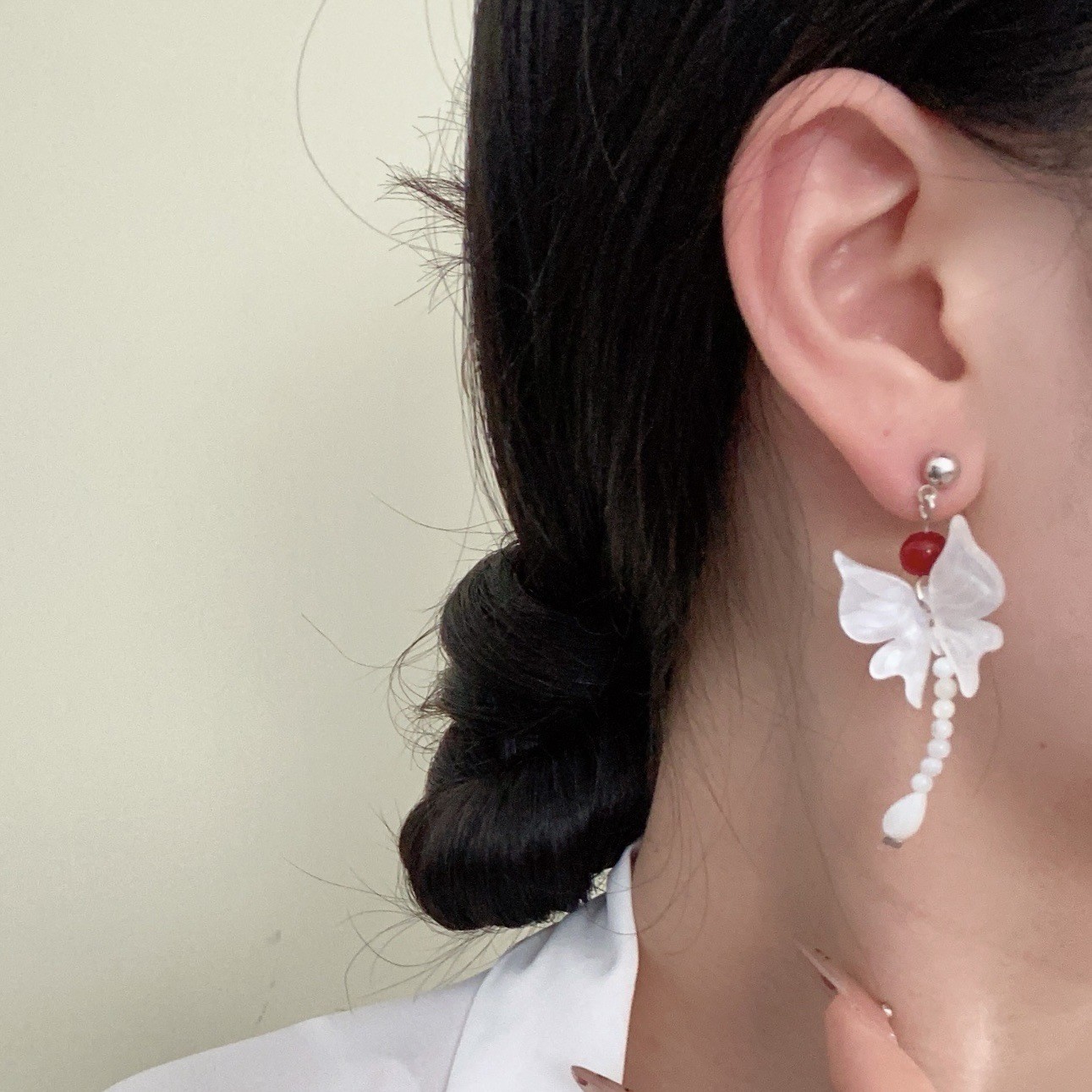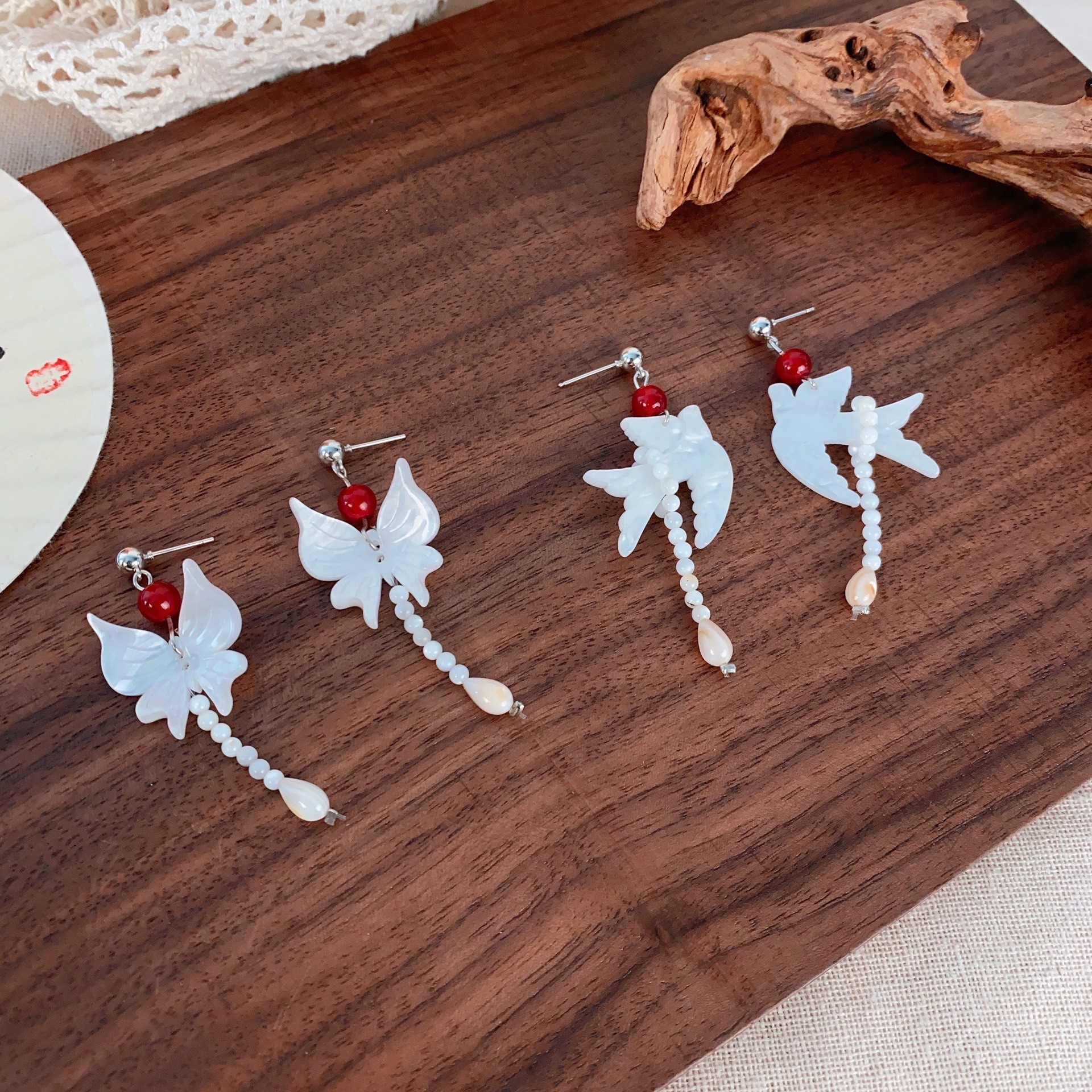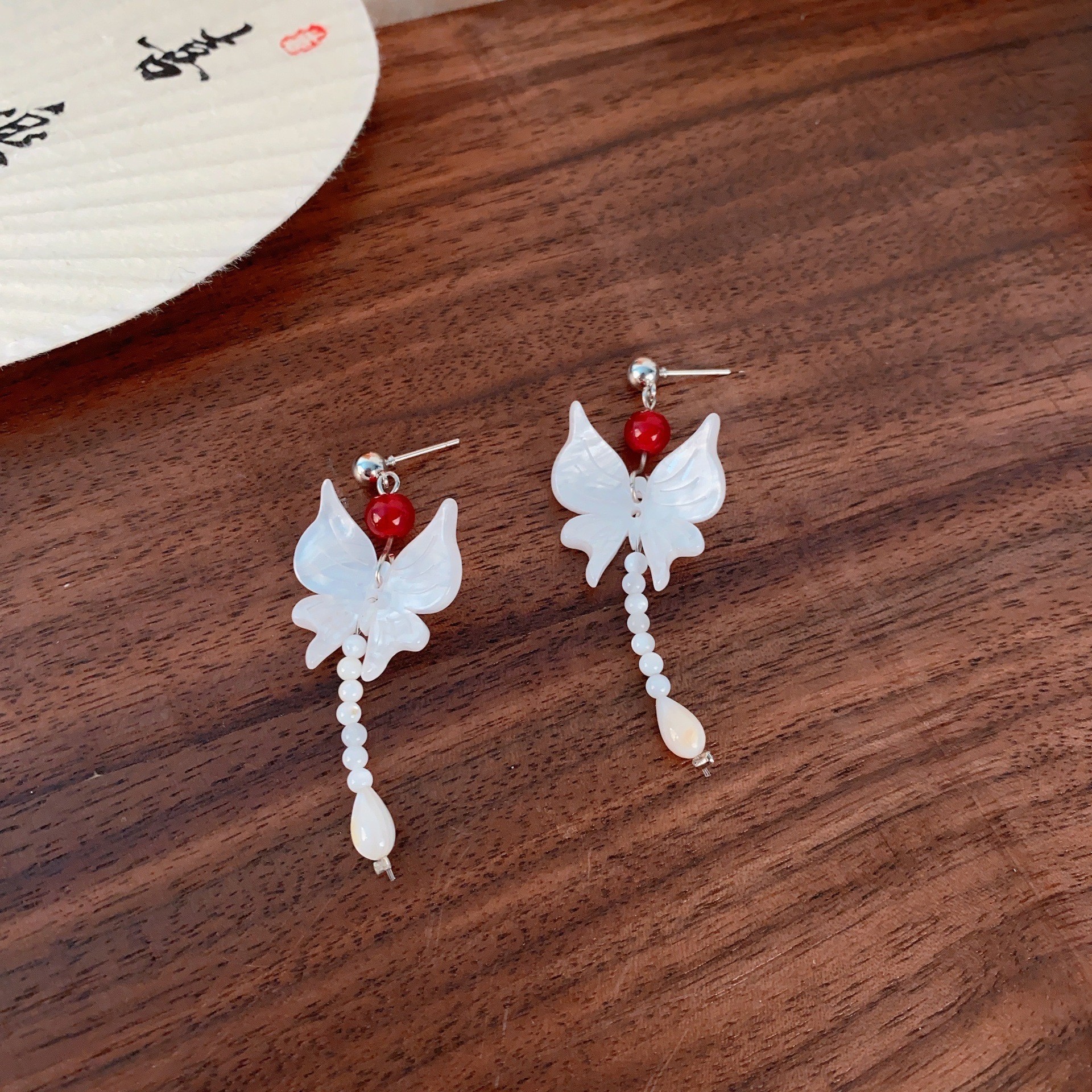 새로운 중국 스타일 모조 화이트 나비 조개 귀 후크 여성용 골동품 빈티지 틈새 디자인 고급 절묘한 귀걸이 올 매치 액세서리스토어 가기