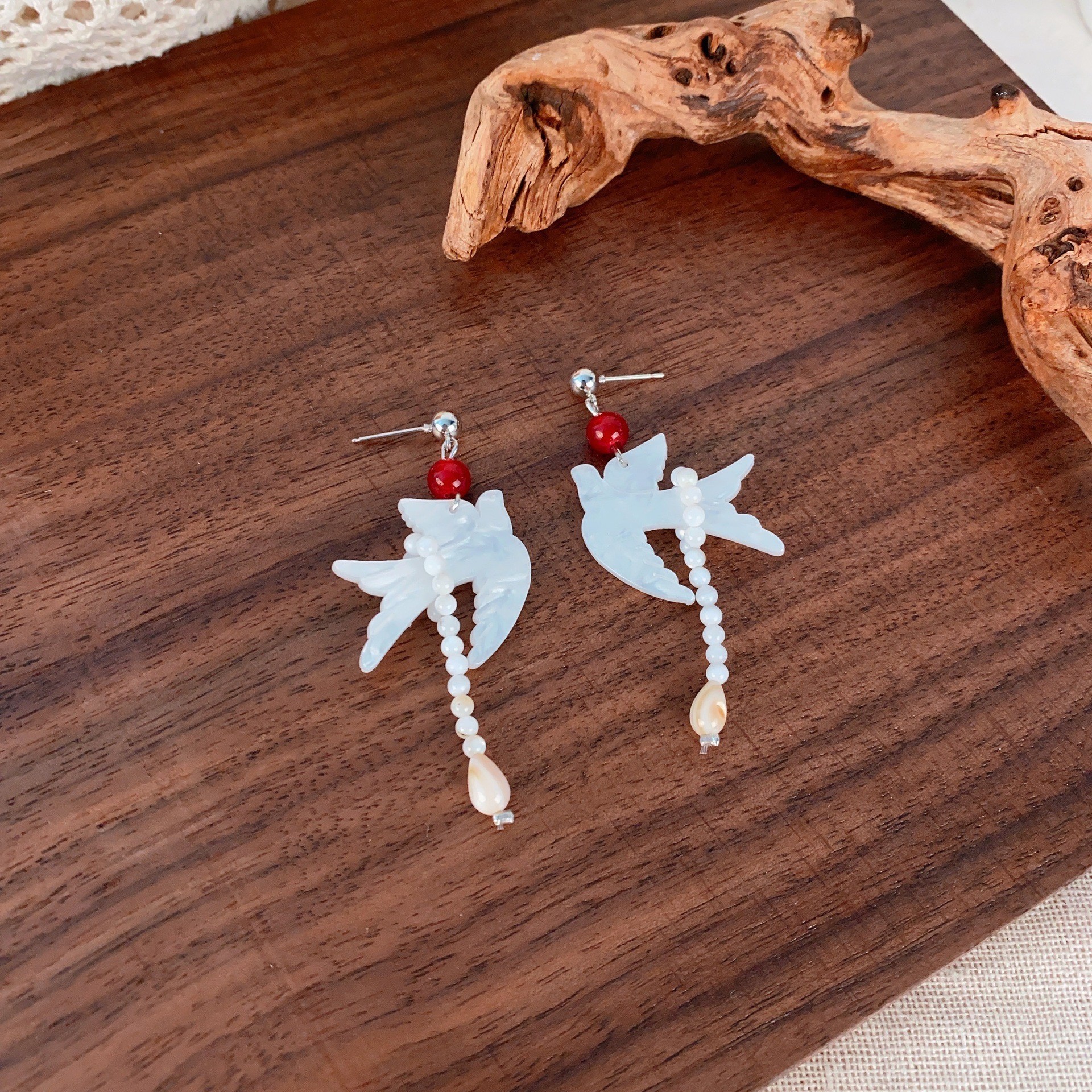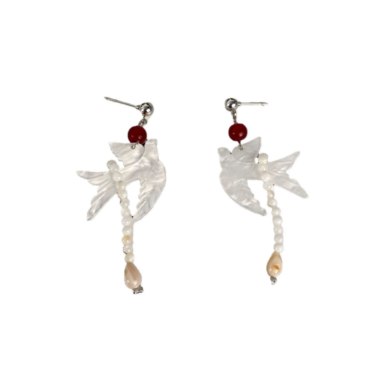 새로운 중국 스타일 모조 화이트 나비 조개 귀 후크 여성용 골동품 빈티지 틈새 디자인 고급 절묘한 귀걸이 올 매치 액세서리