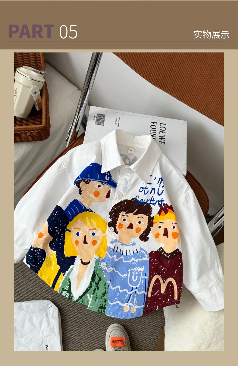 남아용 셔츠 2026 봄 신상품 어린이 만화 캐릭터 긴팔 셔츠 가을 한국 스타일 캐주얼 순면 상의