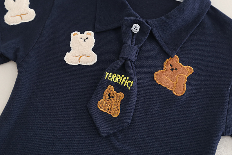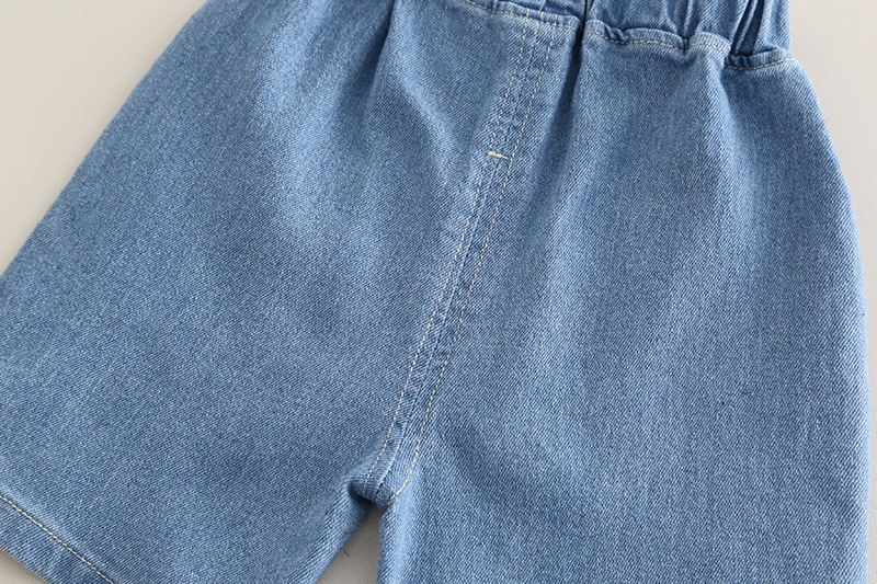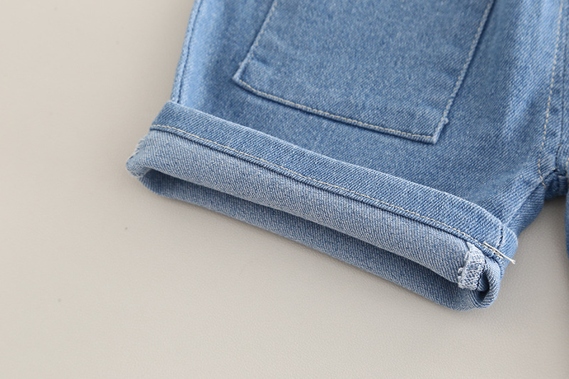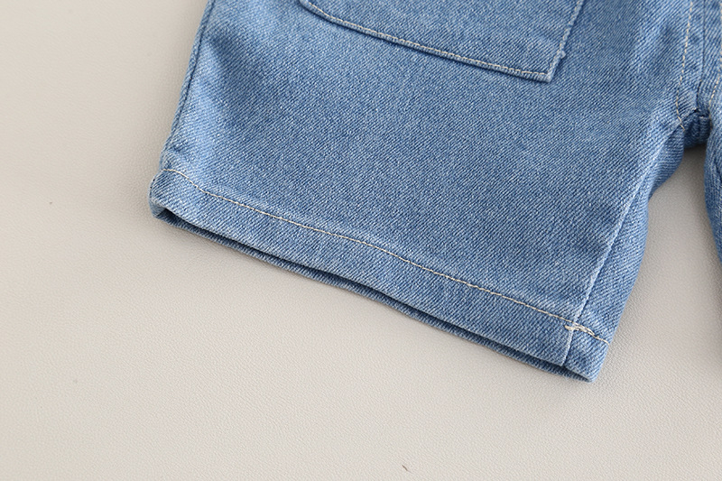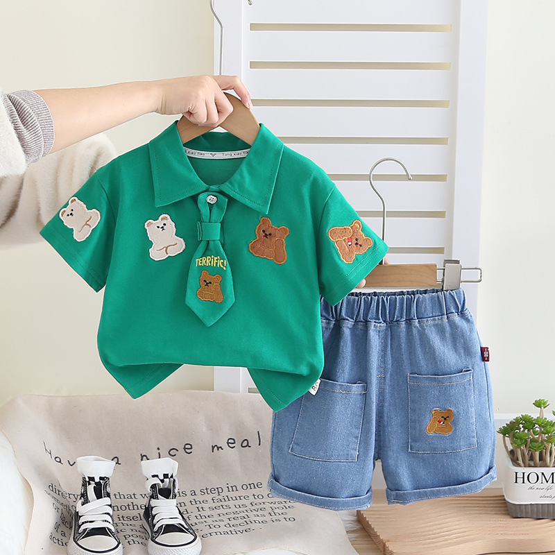 새로운 여름 소년 옷깃 칼라 편지 인쇄 짧은 소매 캐주얼 데님 바지 두 조각 공장 도매