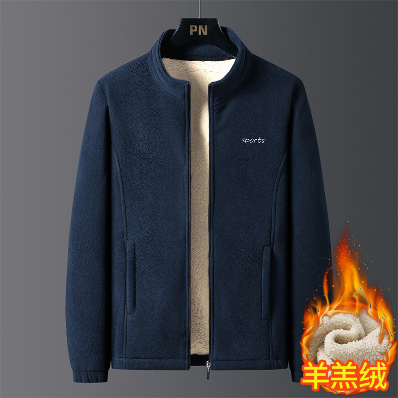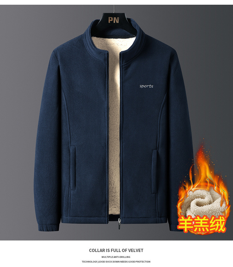 가을과 겨울 양가죽 기모 젊고 중년 남성을위한 루즈 자켓 플러스 사이즈 두꺼운 남성용 코트 칼라 카디건 양털스토어 가기