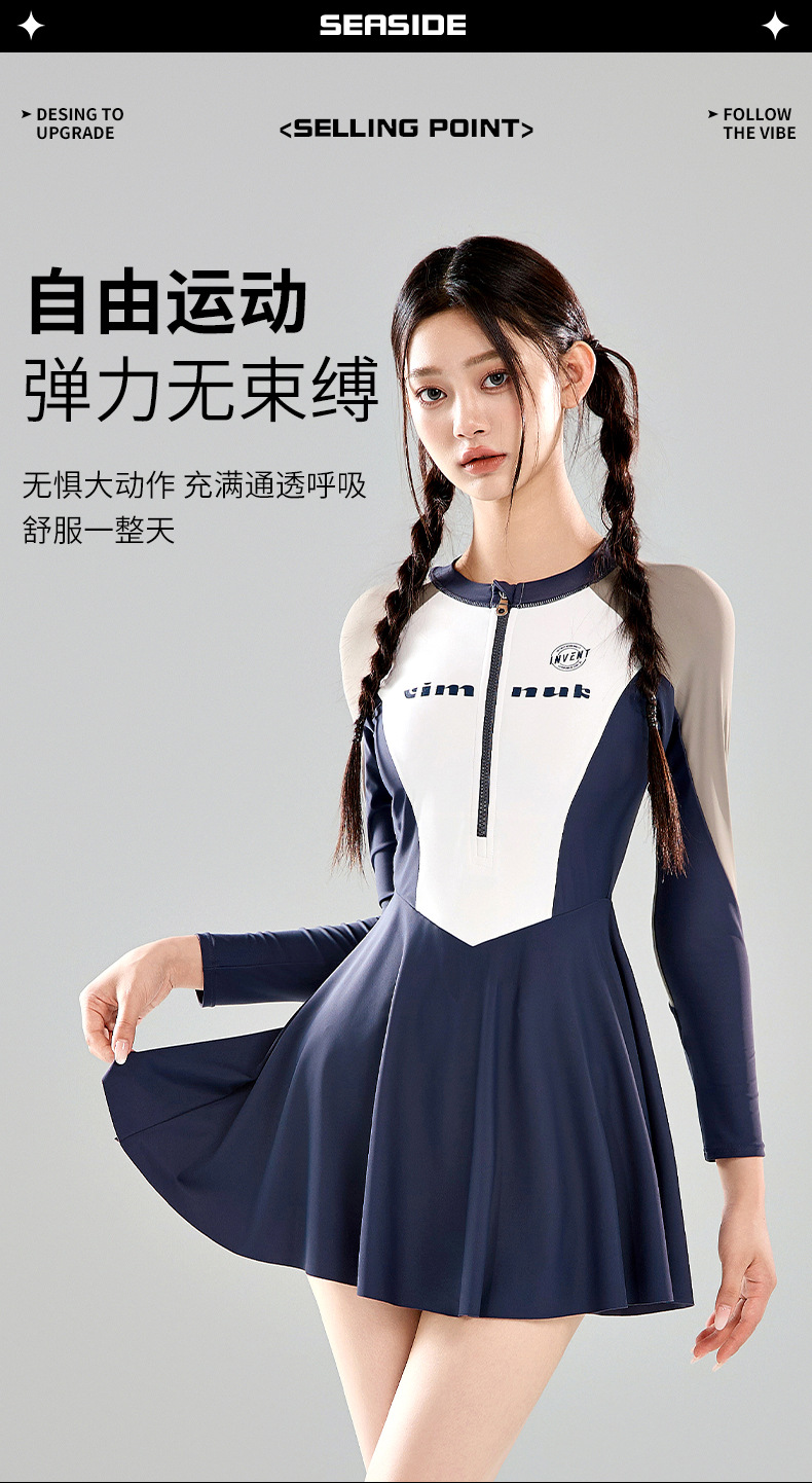 수영복 여성 성인 슬리브 복서 스커트 수영복 신식 여성 보수적 배꼽 커버 슬림핏 긴팔 스포츠 세트스토어 가기