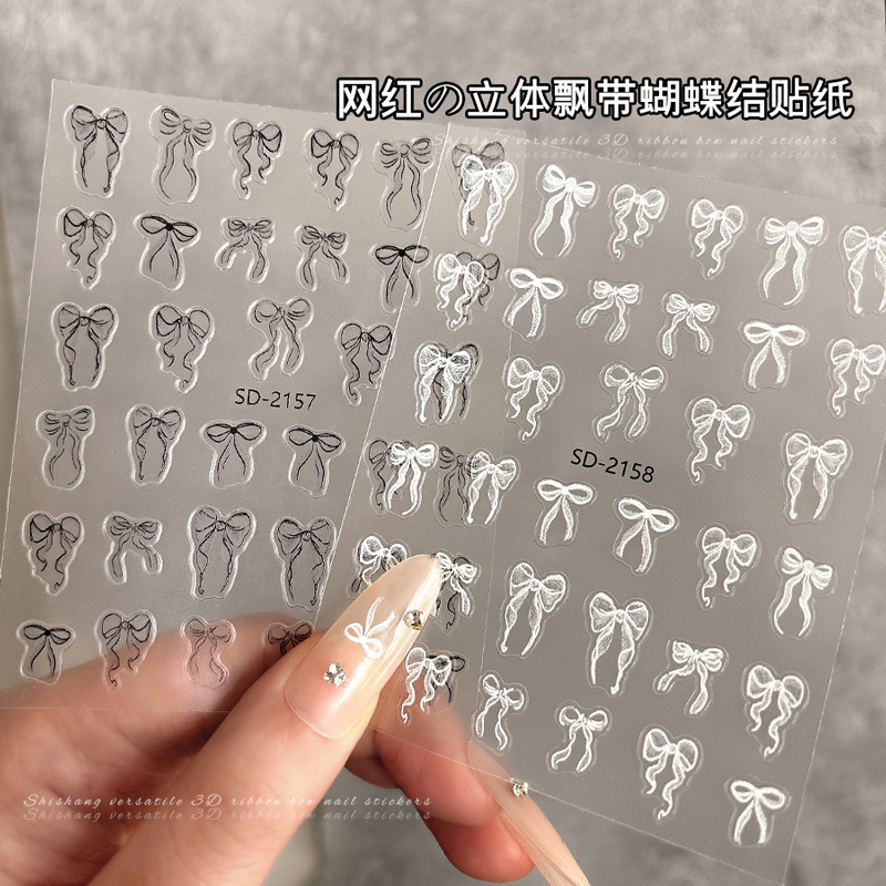 네일 아트 스티커 요정 리본 활 인 스타일 달콤한 우아한 활 넥타이 흑백 네일 스티커 장식스토어 가기