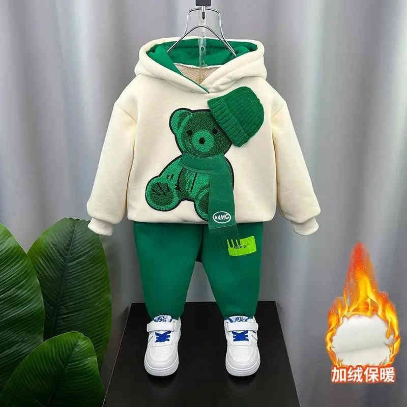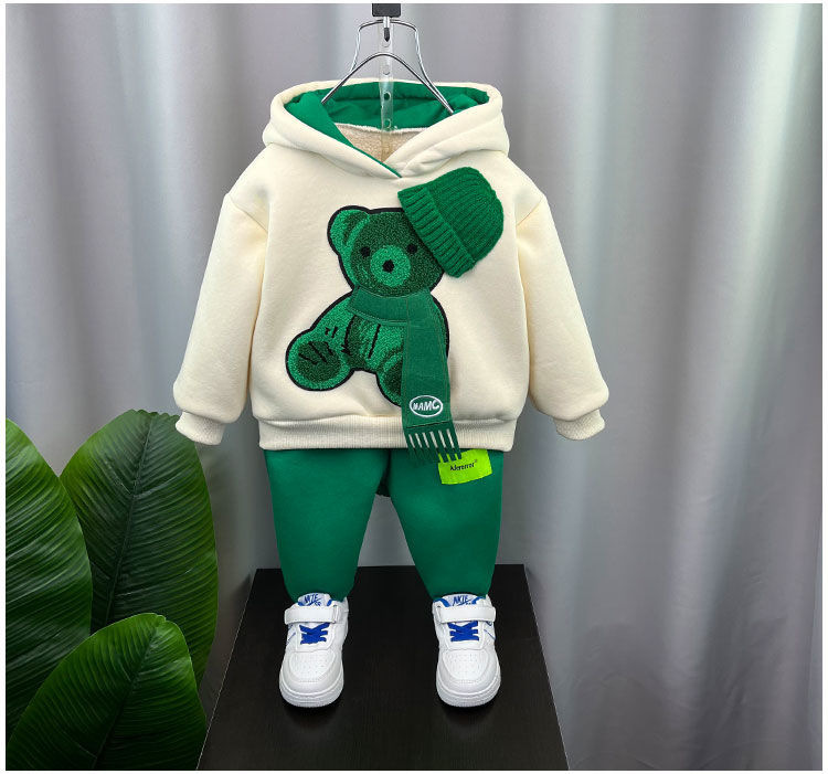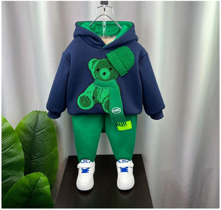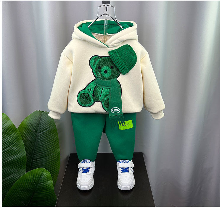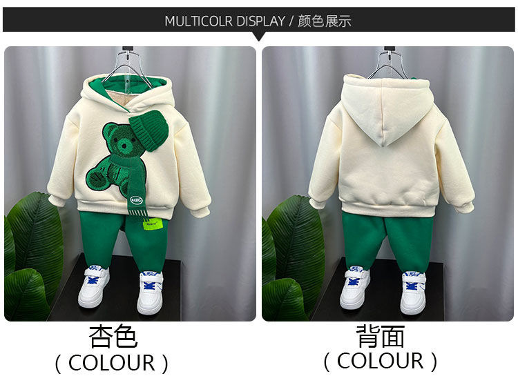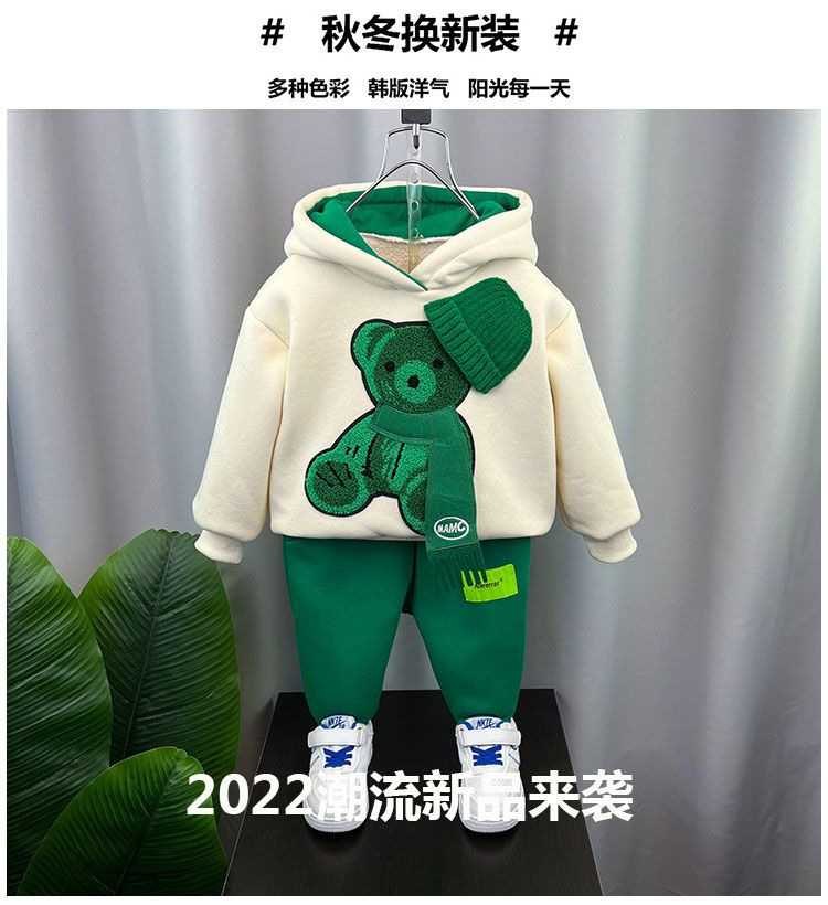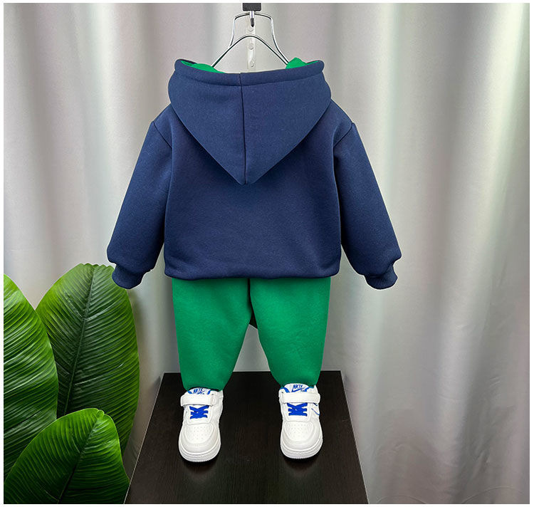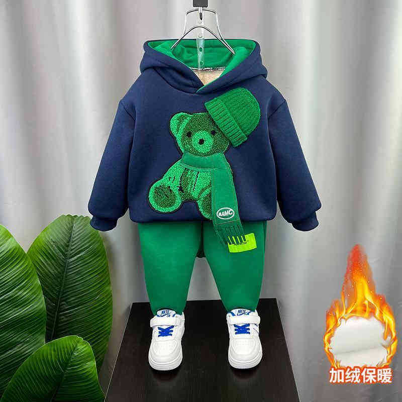 남학생 겨울복 세트 2024 새로운 아기 인터넷 축하 스포츠 옷 어린이 가을 겨울 기모 땀 투피스 세트