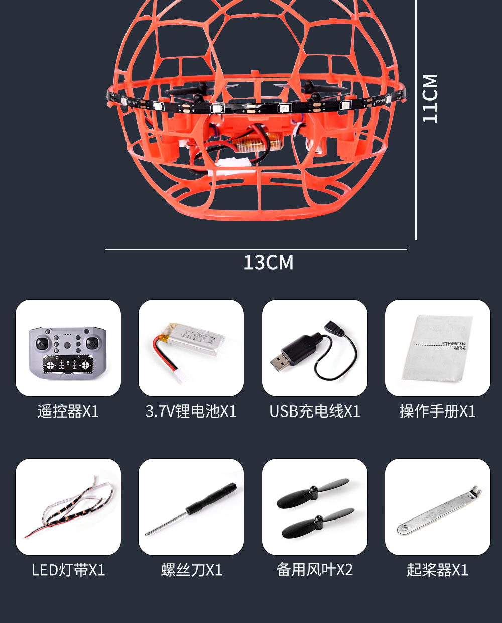 h. 保护设计:球形全封闭保护罩,以保证飞行安全