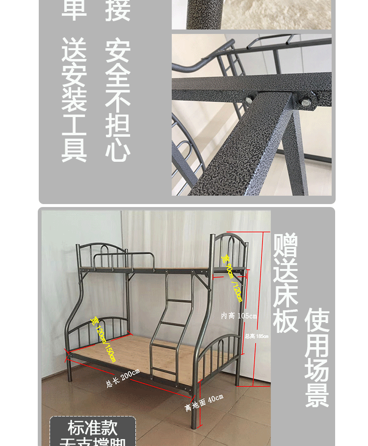 기숙사 상하 이층 아이언 프레임 침대 대여실 높고 낮은 더블 침대 좁고 낮은 폭 가구 1.5 m 1.2 부모-자식 어머니 침대