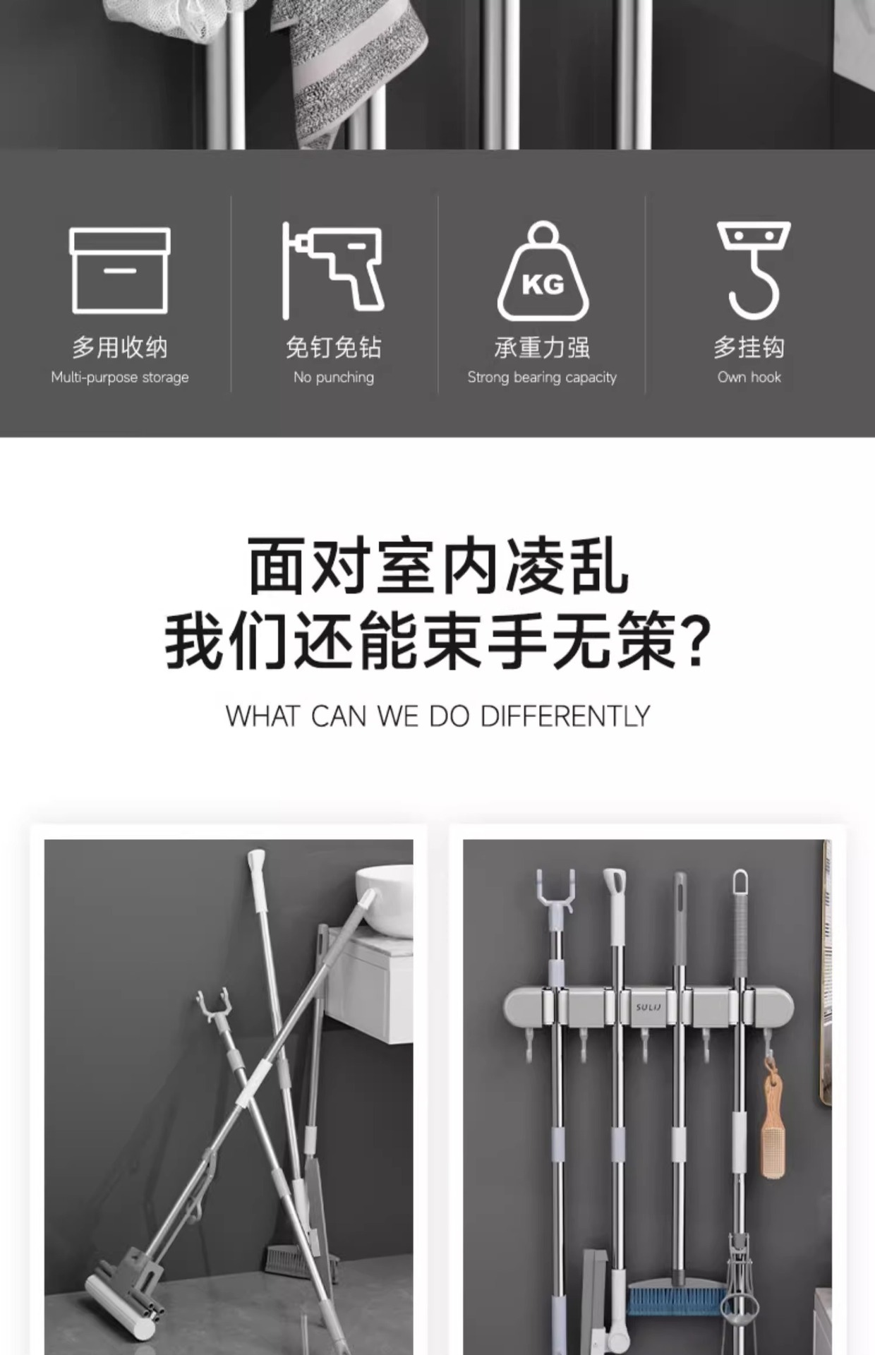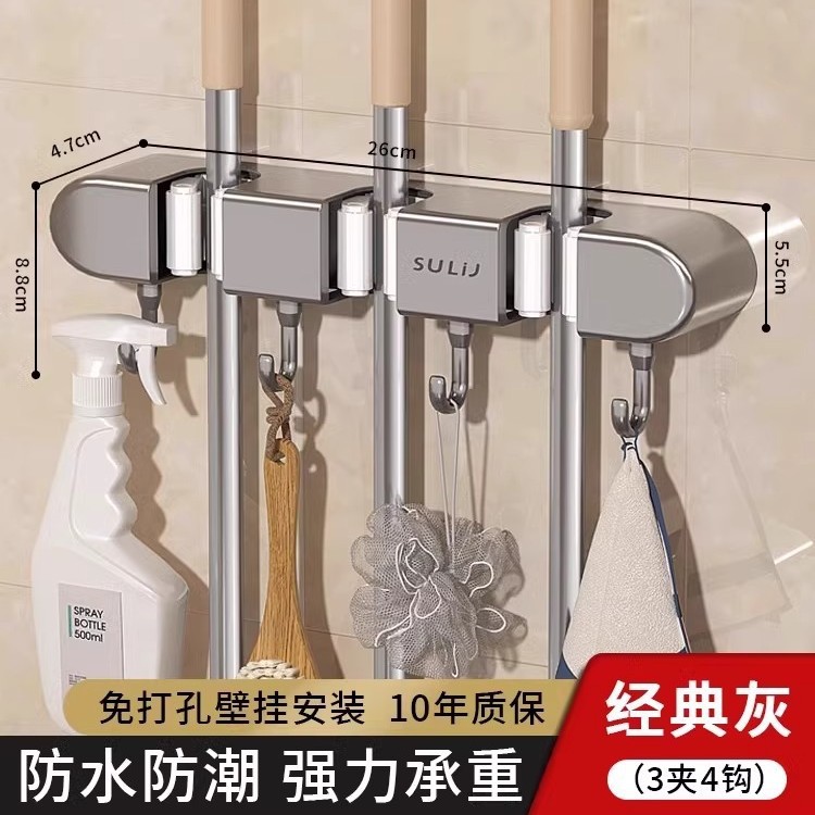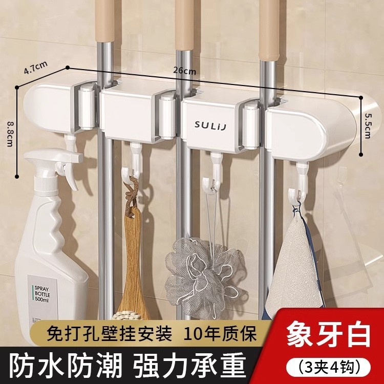 일반 패션 걸레 벽 교수형 클립 매달린 빗자루 걸레 구멍이 뚫린 후크 고정 프레임 욕실 도어 리어 스토리지 랙 아티팩트스토어 가기