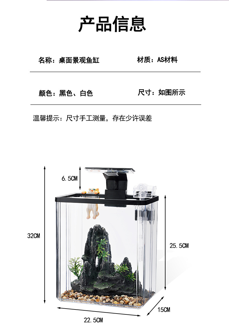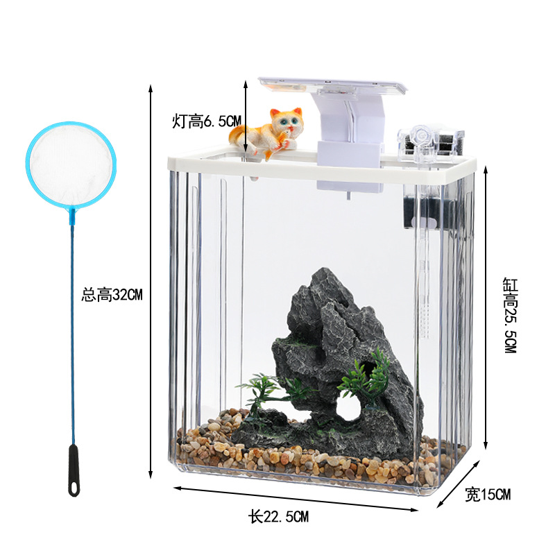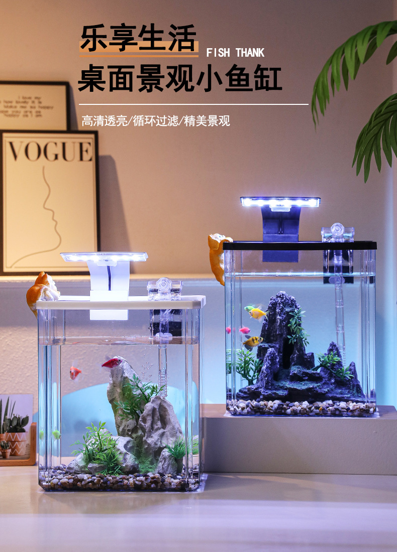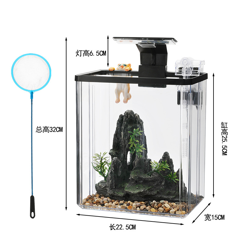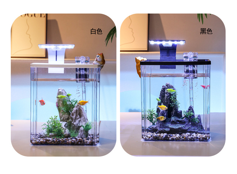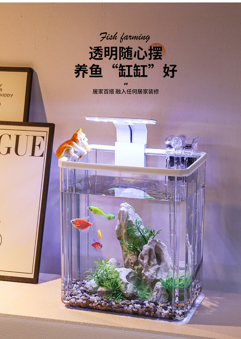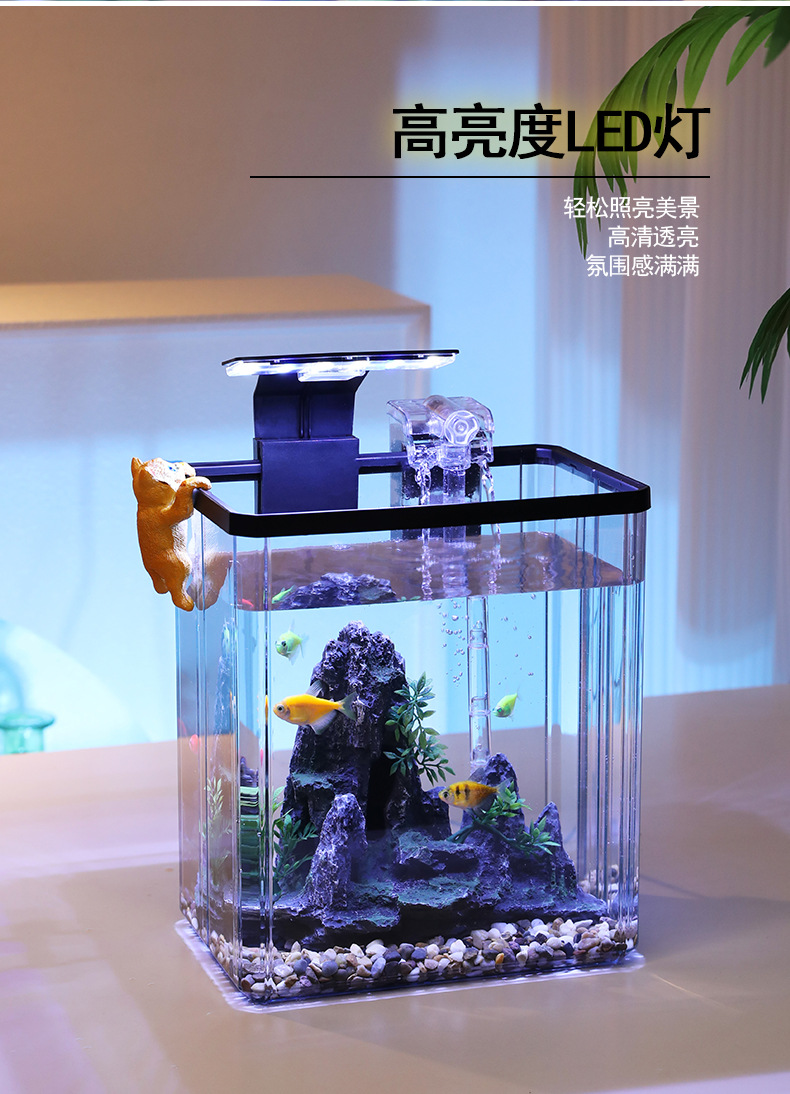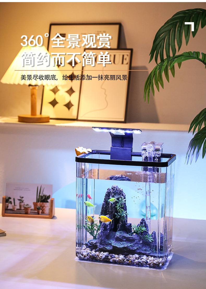 2024 물고기 탱크 작은 집 거실 데스크탑 장식품 생태 탱크 필터 산소 발생 올인원 기계 조경 탱크 전체 스펙트럼스토어 가기