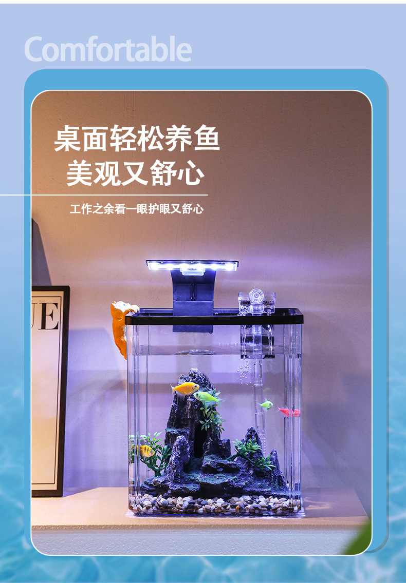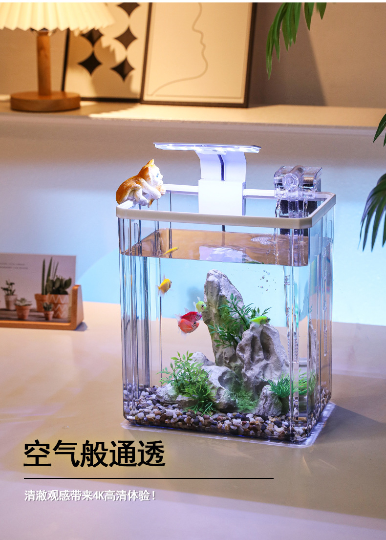 2024 물고기 탱크 작은 집 거실 데스크탑 장식품 생태 탱크 필터 산소 발생 올인원 기계 조경 탱크 전체 스펙트럼