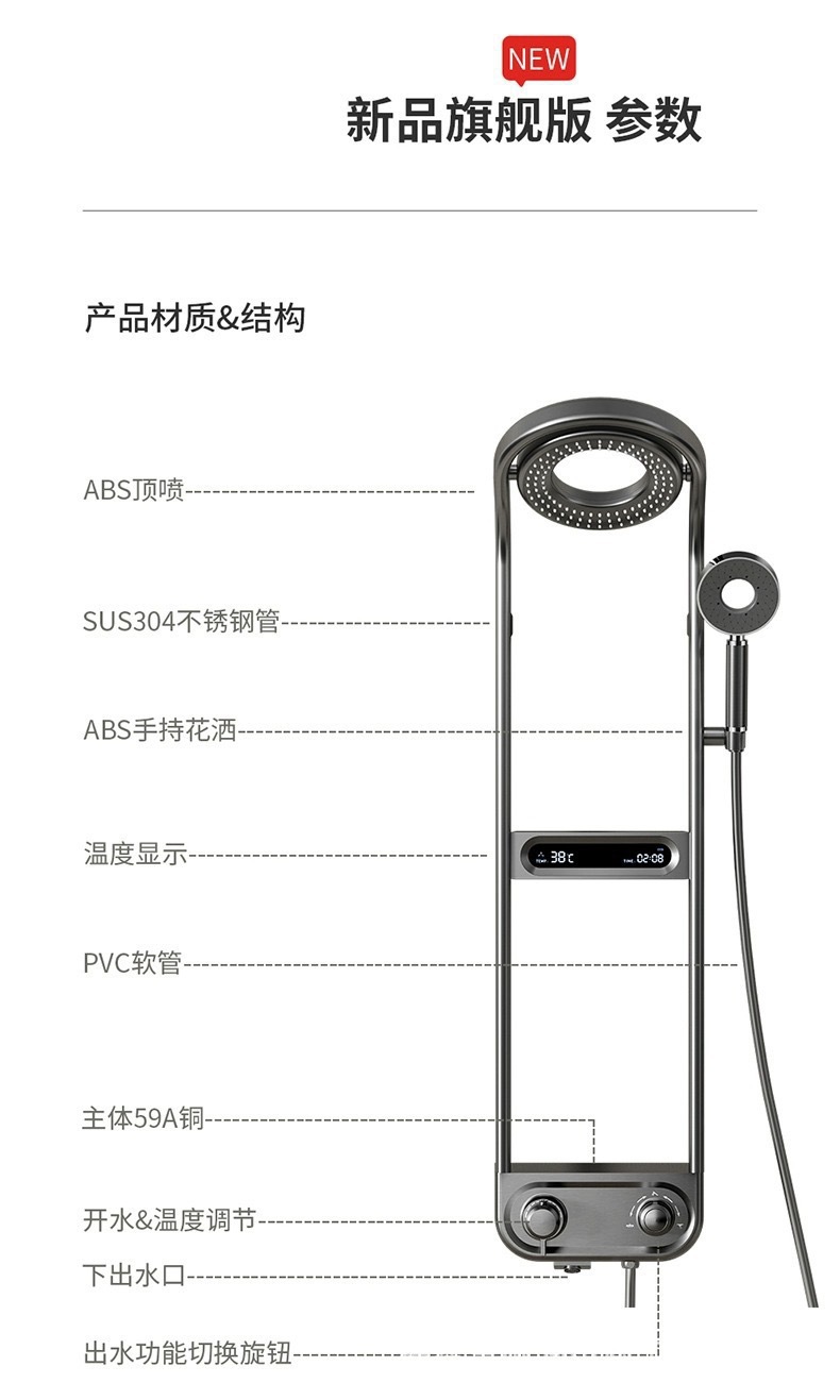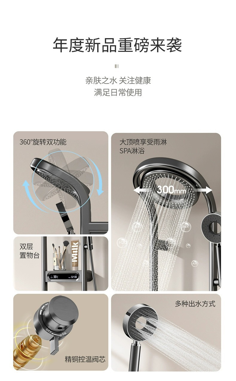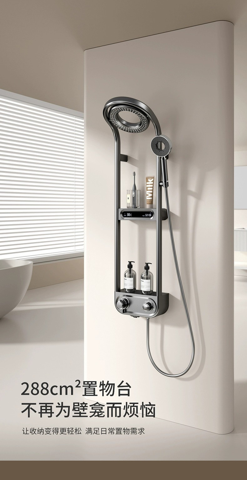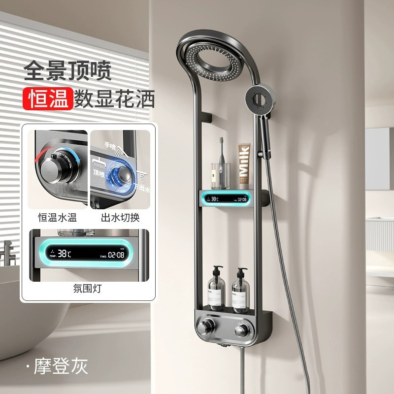 파노라마 탑 스프레이 샤워 세트 일정한 온도 샤워 가정용 욕실 디지털 디스플레이 압축 샤워 헤드
