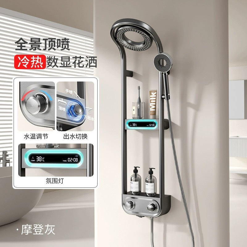파노라마 탑 스프레이 샤워 세트 일정한 온도 샤워 가정용 욕실 디지털 디스플레이 압축 샤워 헤드스토어 가기