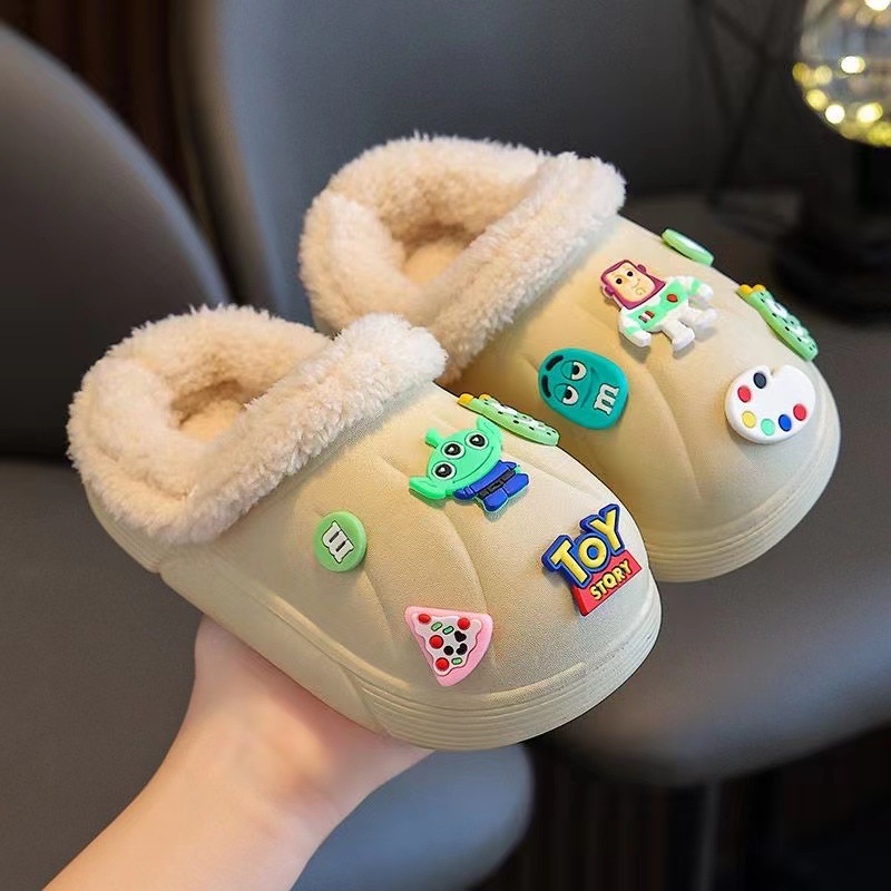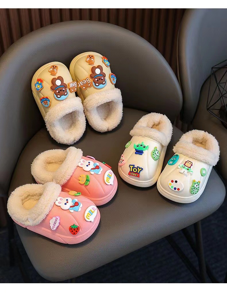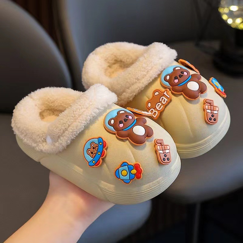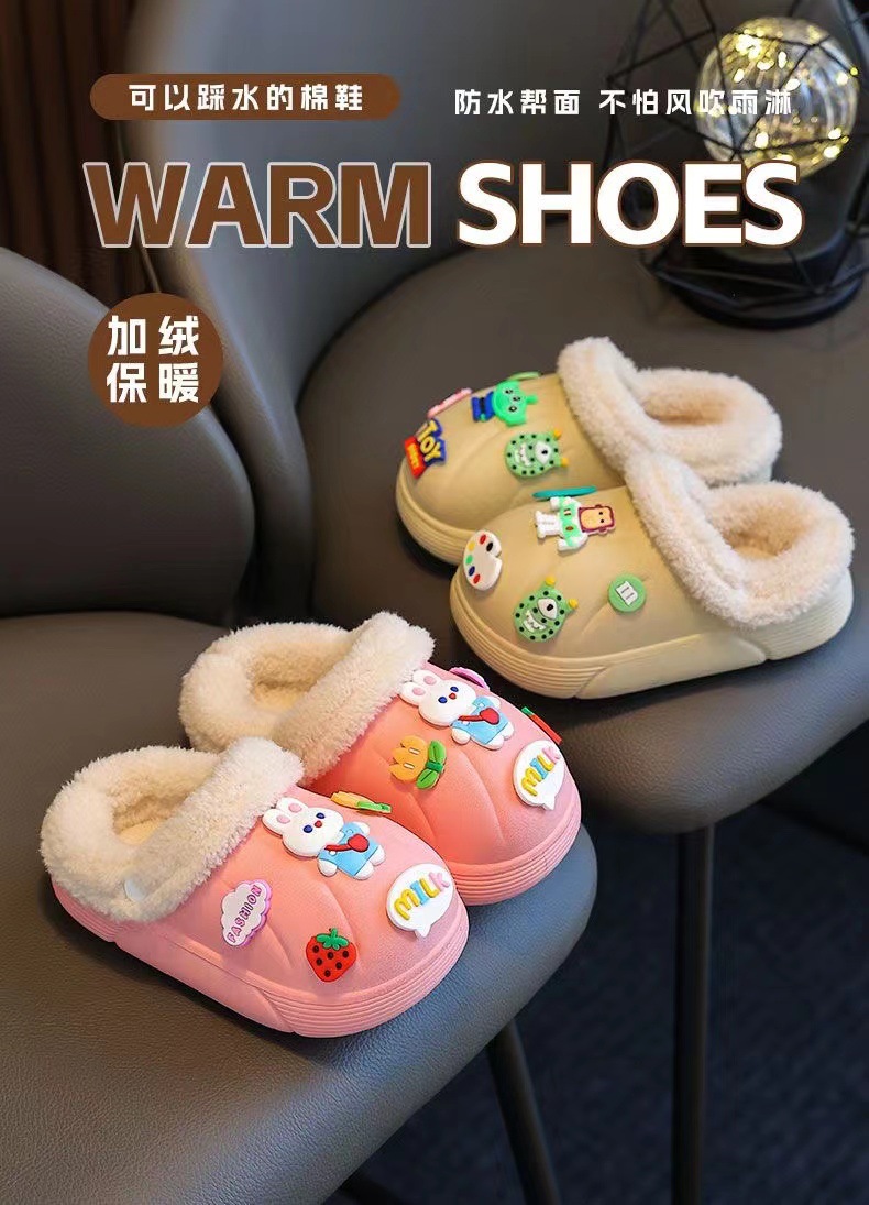 남학생과 여학생을위한 내부 컨테이너 분리 가능한 면화 슬리퍼 여성의 방수 미끄럼 방지 가을과 겨울 가정 기모 따뜻한 방수 양모 슬리퍼