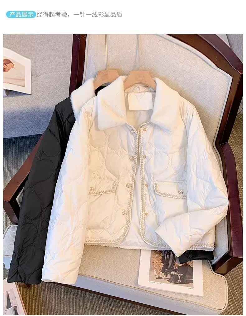 짧은 블랙 샤넬 스타일 실크면 패딩 재킷 여성 겨울 2024 새로운 경량 디자인 유행 우아한 아름다운 코트스토어 가기
