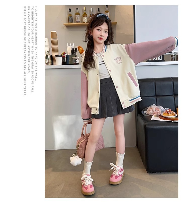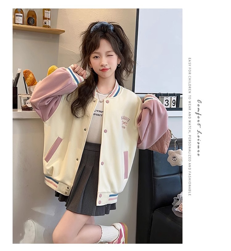 여자 야구 세트 가을 2024 새로운 어린이 서양식 기모 큰 아이들 가을과 겨울 여자 스포츠 자켓 탑