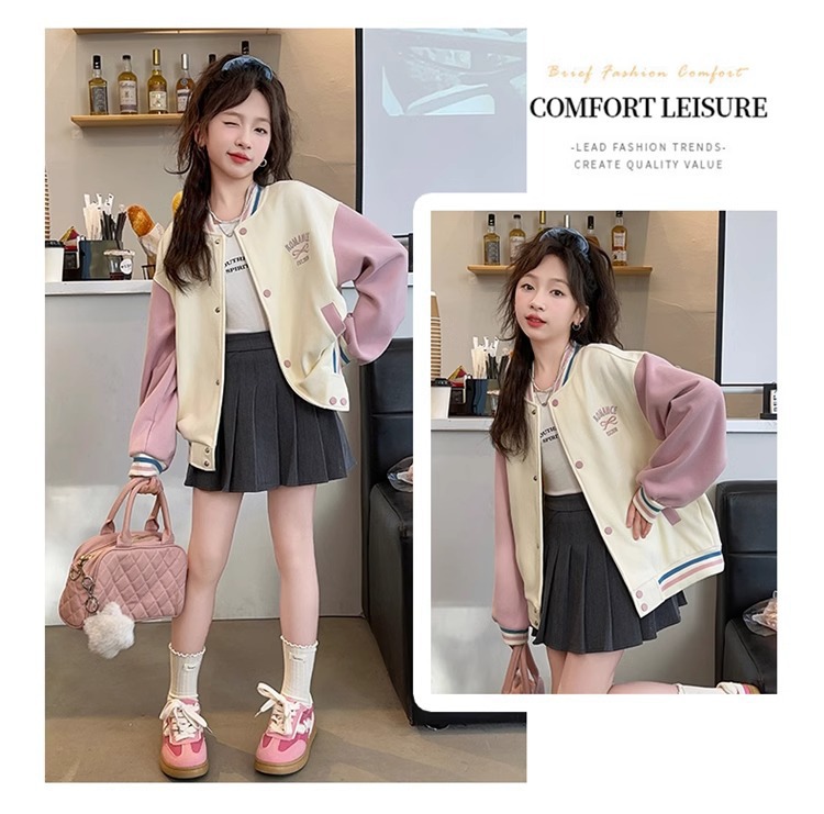 여자 야구 세트 가을 2024 새로운 어린이 서양식 기모 큰 아이들 가을과 겨울 여자 스포츠 자켓 탑스토어 가기