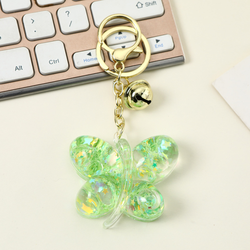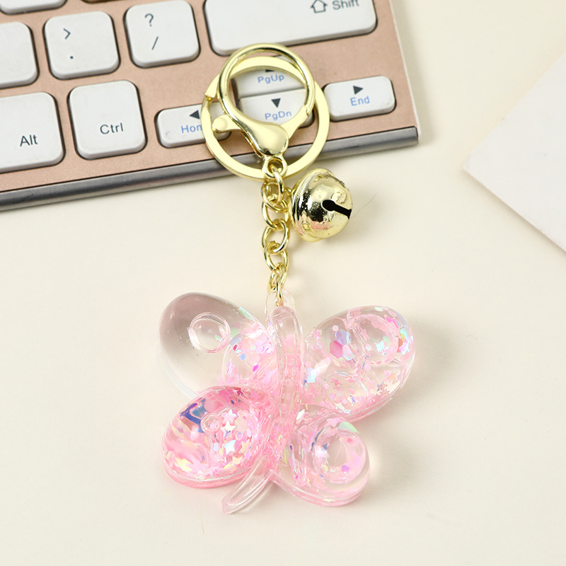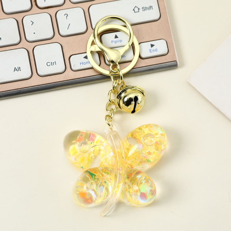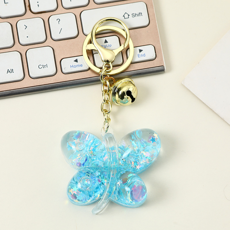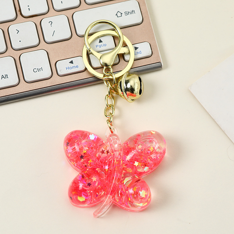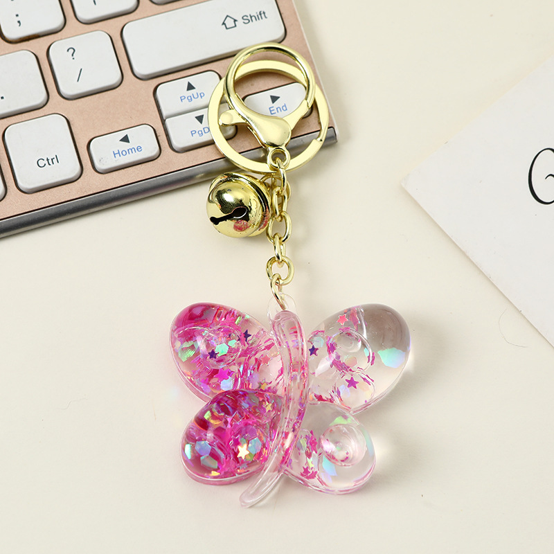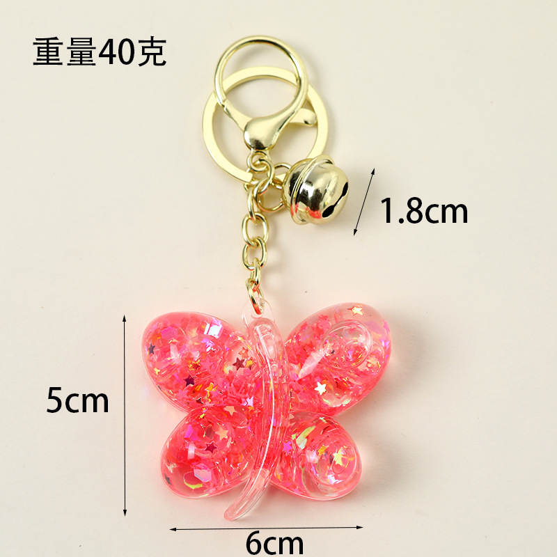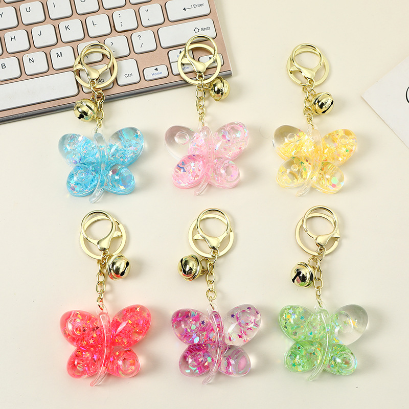 새로운 아크릴 오일 나비 키 체인 펜던트 패션 크리스탈 스팽글 드리프트 병 키 체인 가방 장식