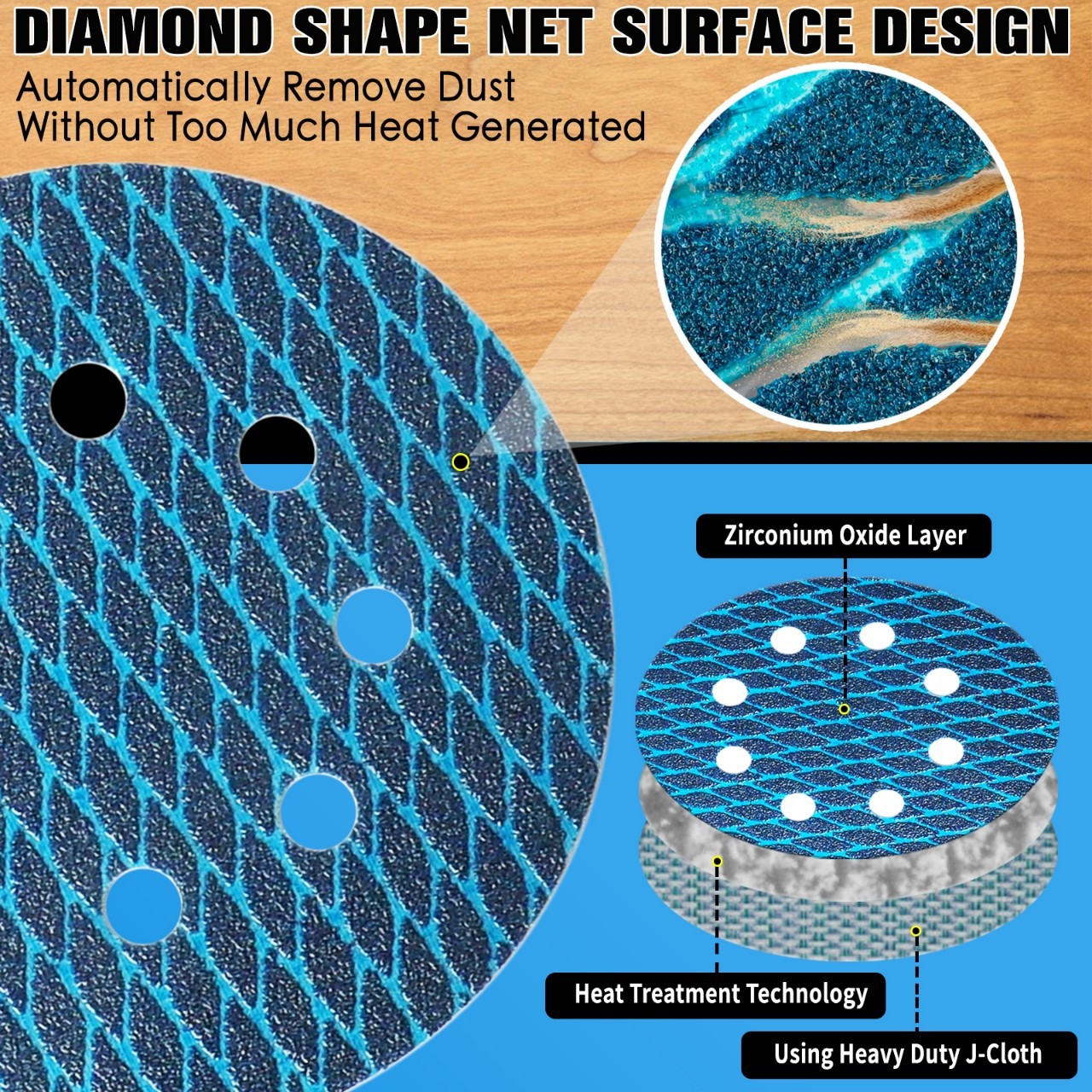 다이아몬드 사포 세라믹 모래 지르코늄 커런덤 5 인치 8 홀 플로킹 사포스토어 가기