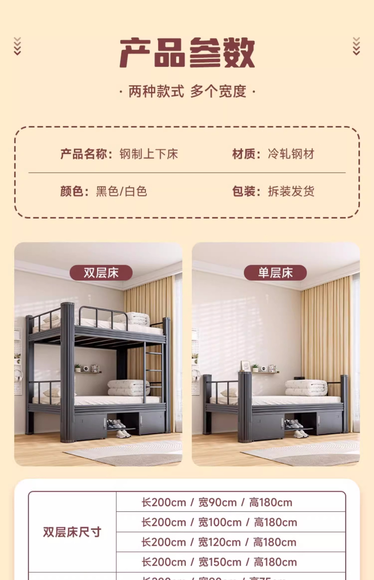 상부 및 하부 이층 더블 아이언 프레임 침대 맞춤형 두껍게 된 상부 및 하부 침대 높고 낮은 침대 직원 기숙사 싱글 아이언 침대 1 미터 5 침대스토어 가기