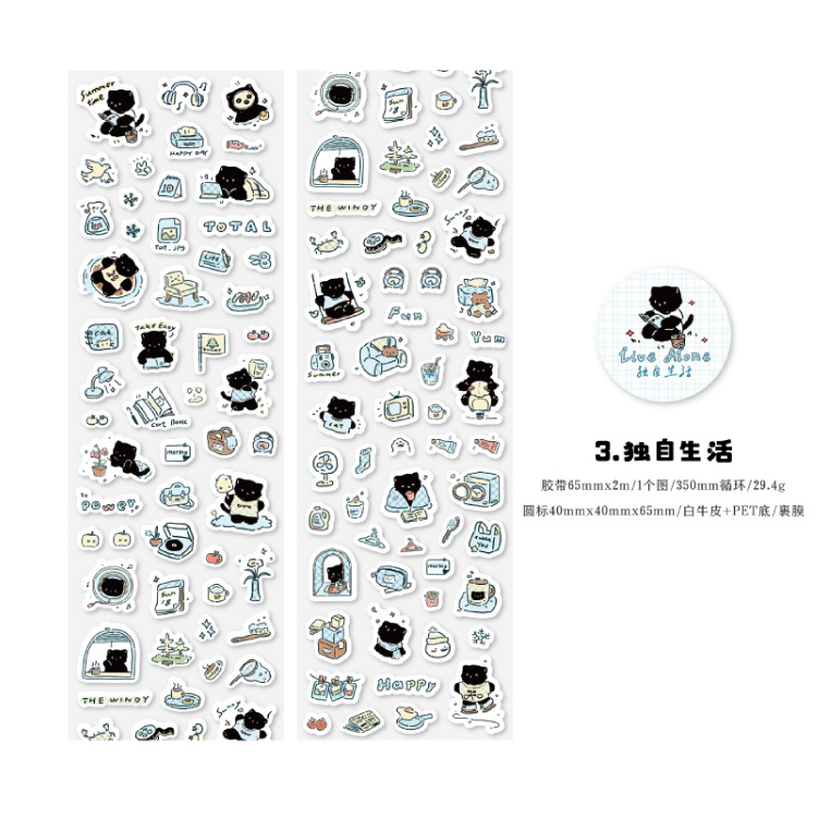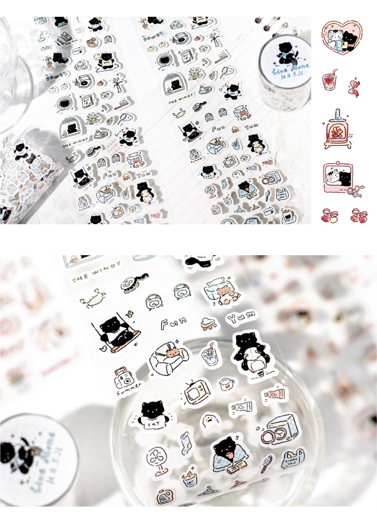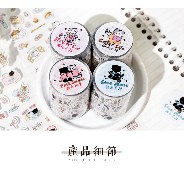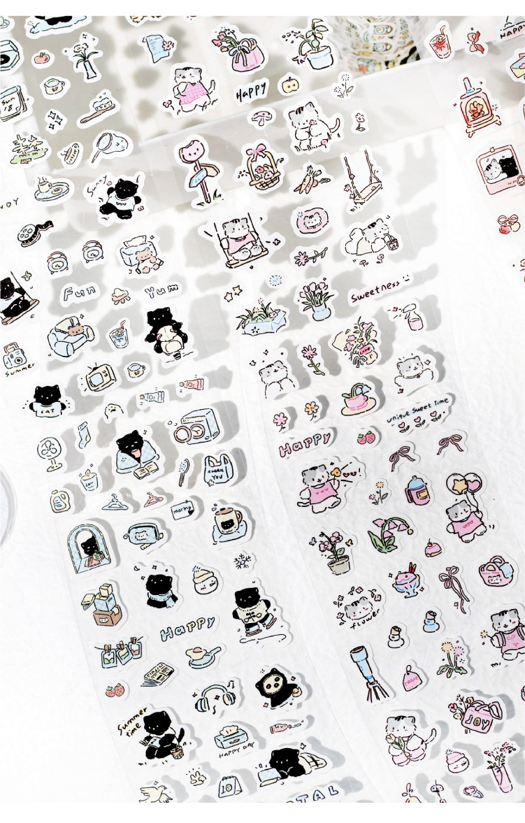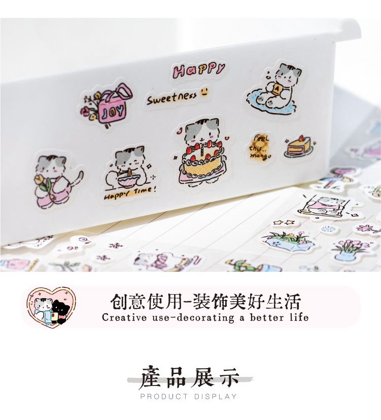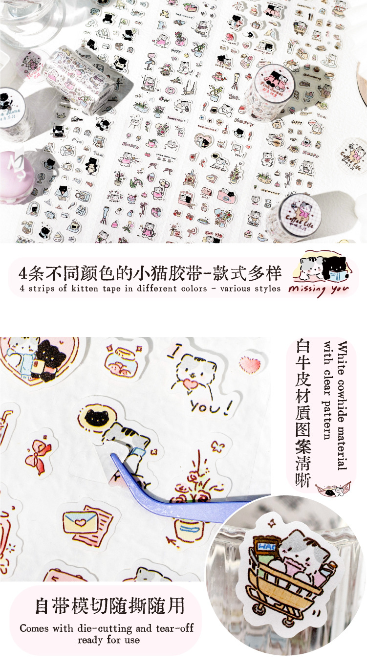 새끼 고양이 인생 일기 구 카드 다이 컷 테이프 손으로 그린 귀여운 고양이 커피 생활 스티커 손 계정 철자 스티커스토어 가기