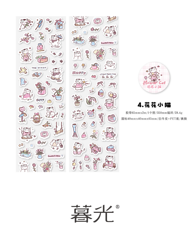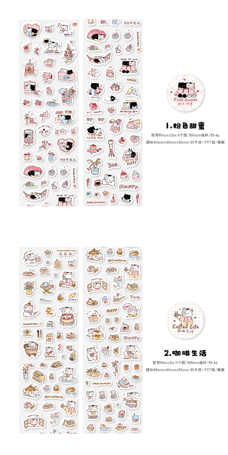 새끼 고양이 인생 일기 구 카드 다이 컷 테이프 손으로 그린 귀여운 고양이 커피 생활 스티커 손 계정 철자 스티커