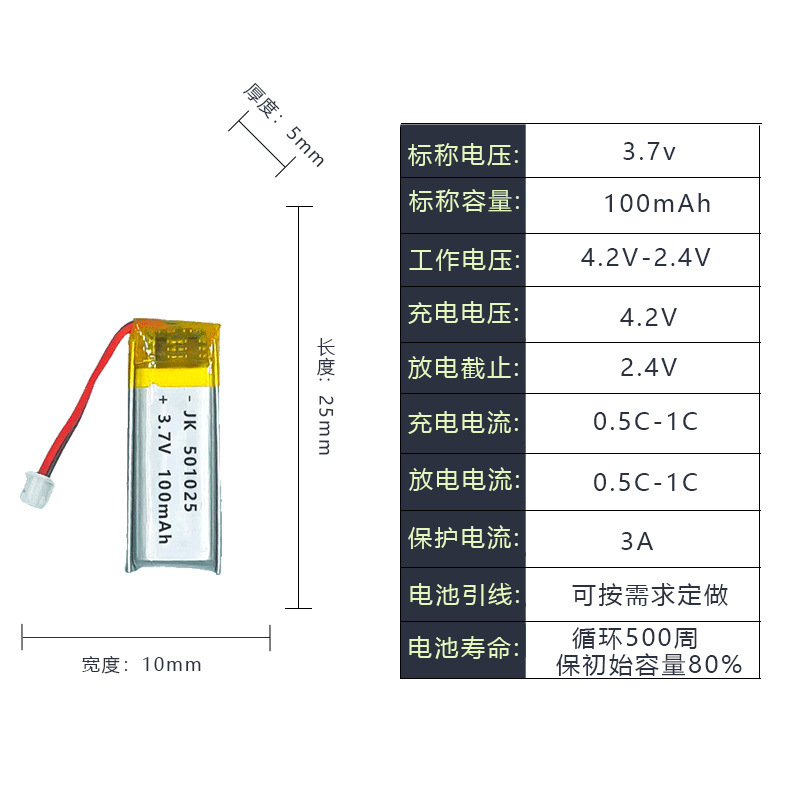 폴리머 리튬 배터리 501 025 100mAh 제조 업체 블루투스 헤드셋 장난감 라이트 녹음 펜 삼원 리튬 배터리스토어 가기