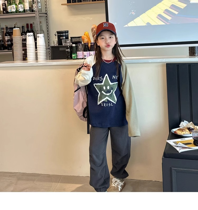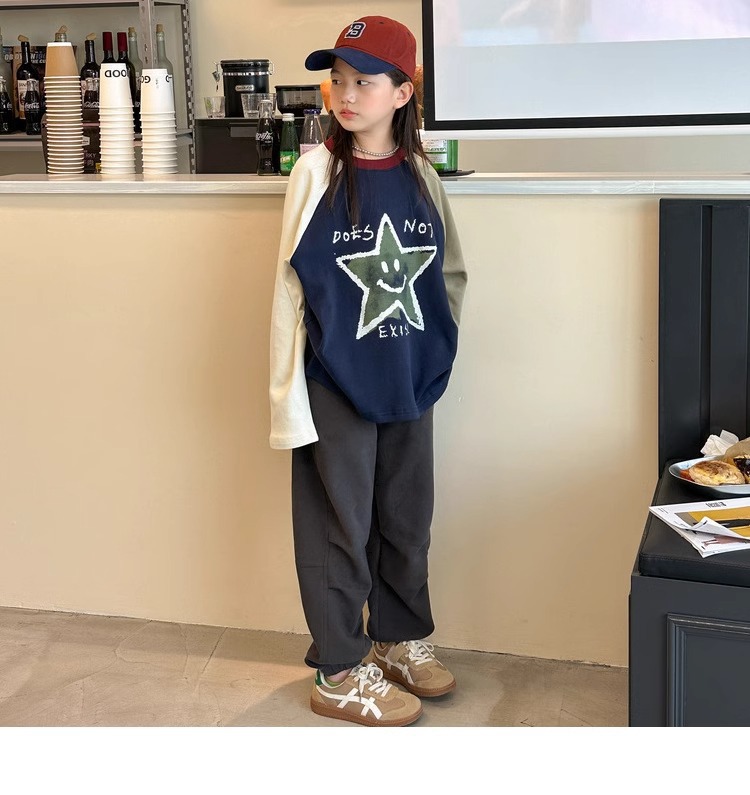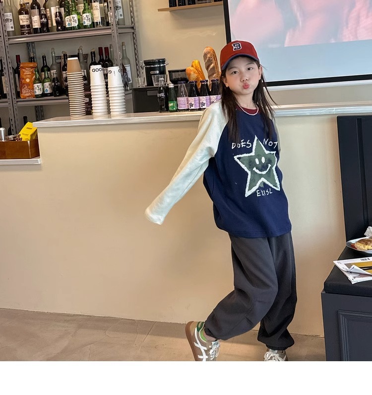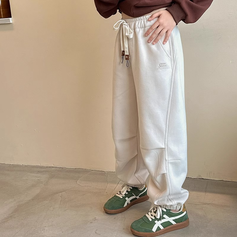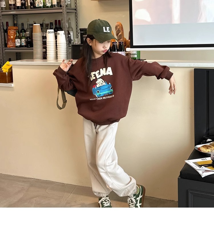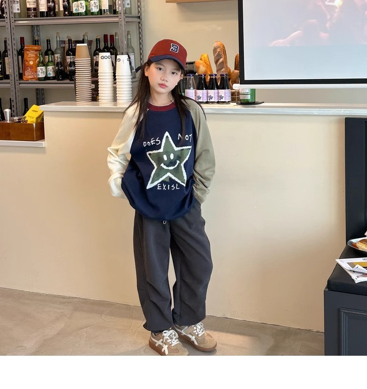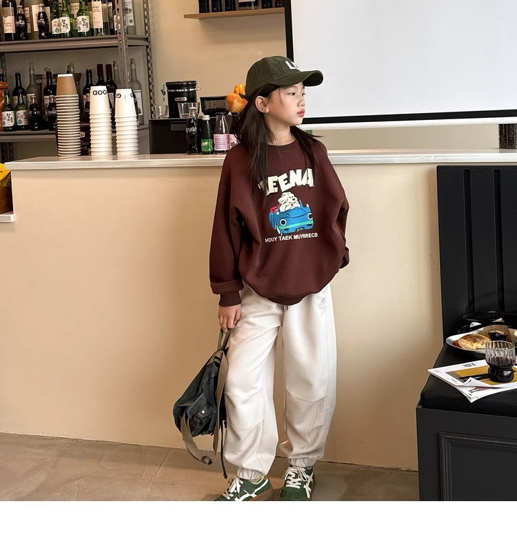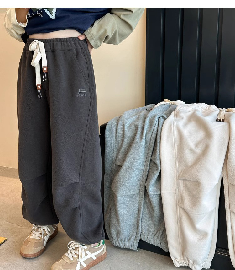 가을과 겨울을위한 소녀 캐주얼 바지 2024 새로운 스타일의 대형 어린이 느슨한 서양식 바지 어린이 바지 발가락 긴 바지스토어 가기