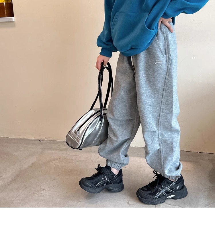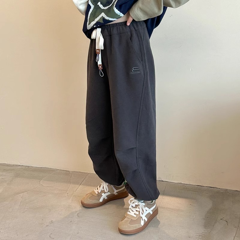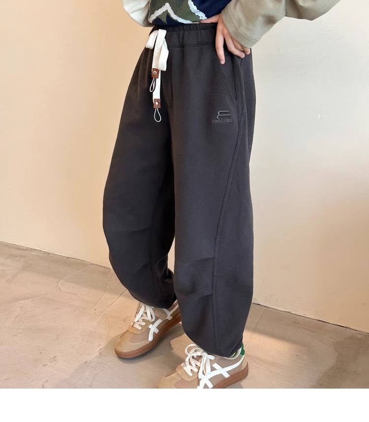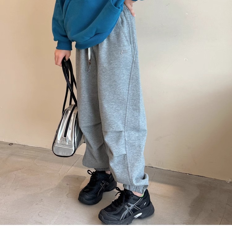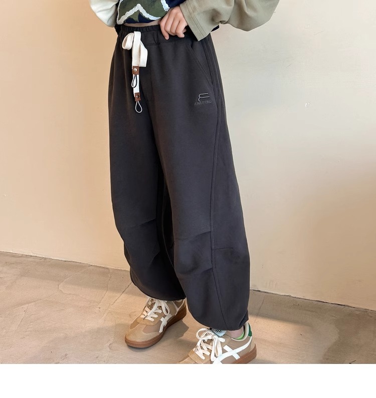 가을과 겨울을위한 소녀 캐주얼 바지 2024 새로운 스타일의 대형 어린이 느슨한 서양식 바지 어린이 바지 발가락 긴 바지