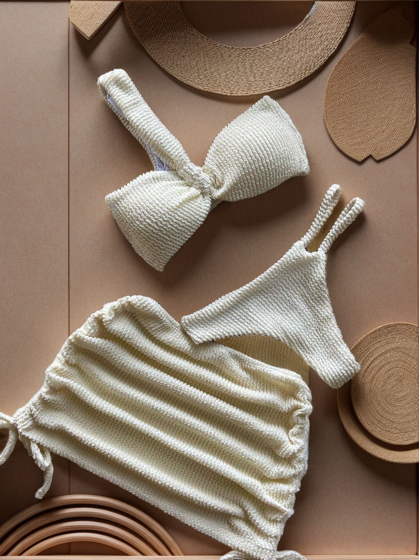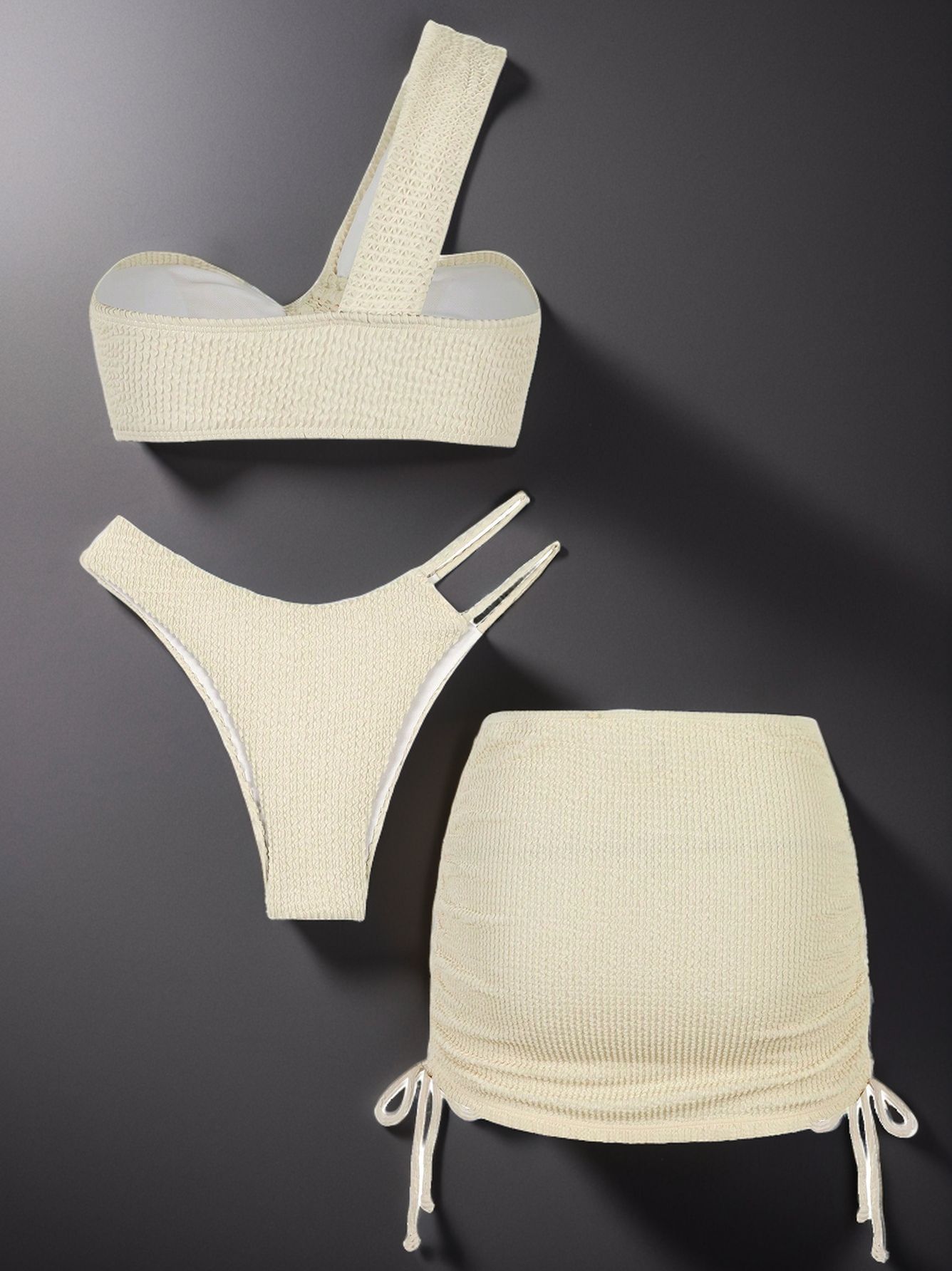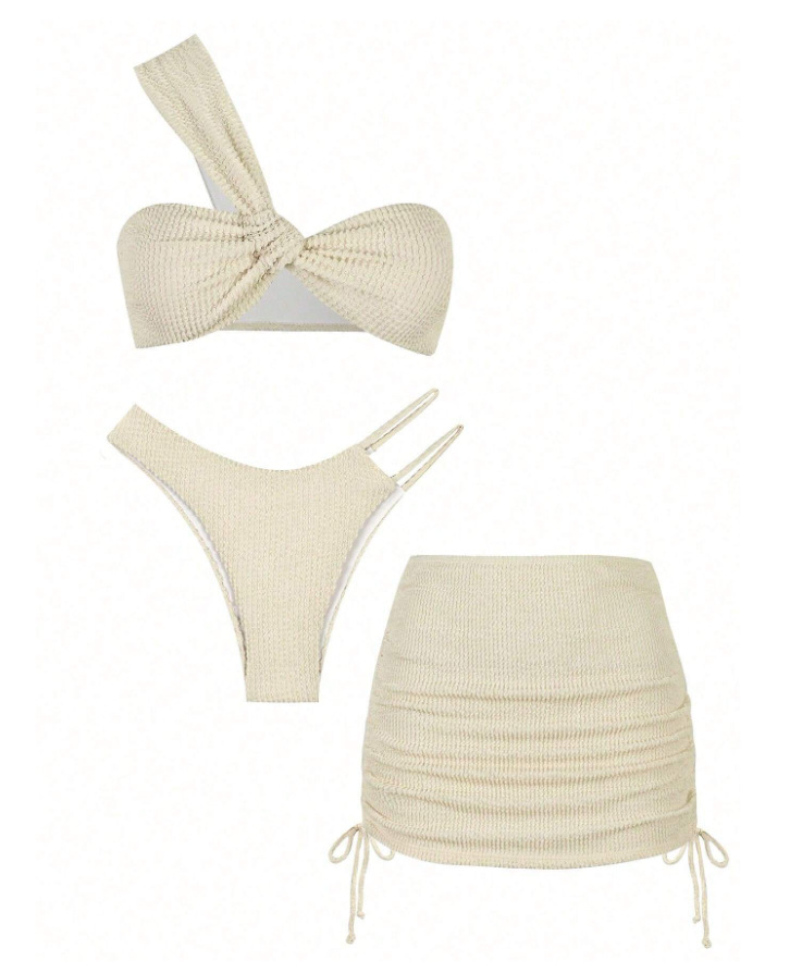 2025년 신상품 유럽 및 미국 스타일 섹시한 원숄더 솔리드 컬러 컷아웃 비키니 3피스 세트스토어 가기