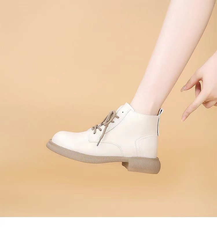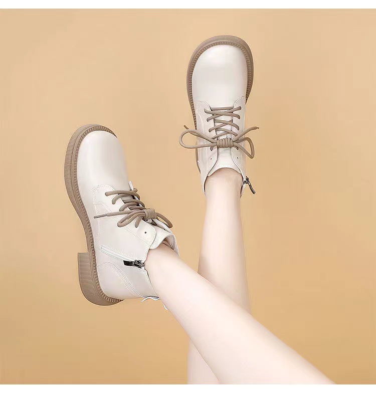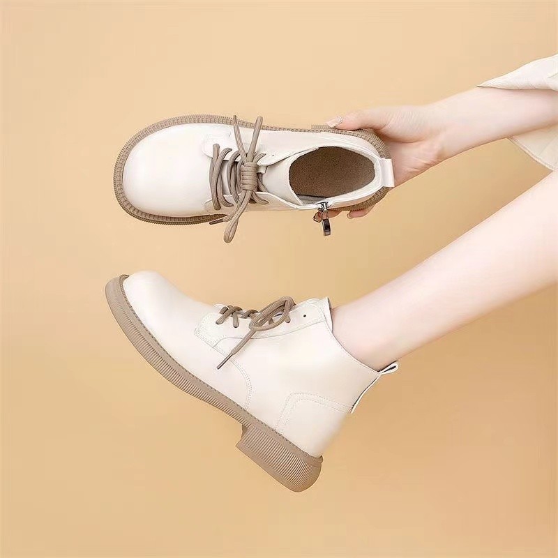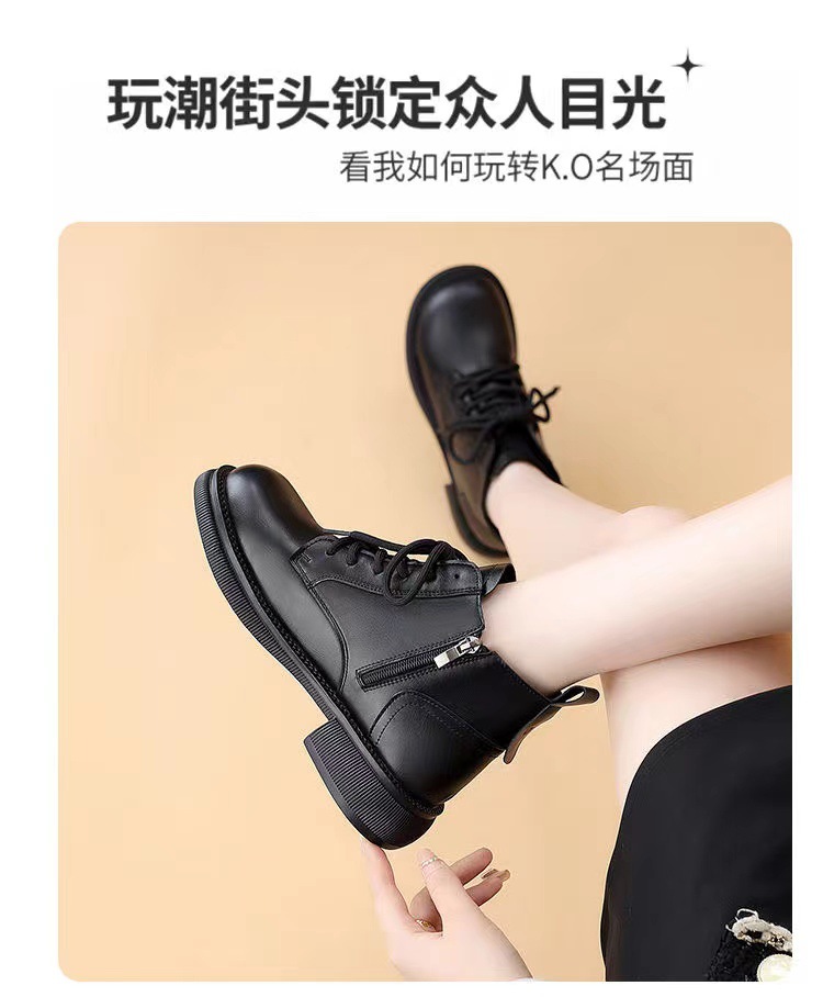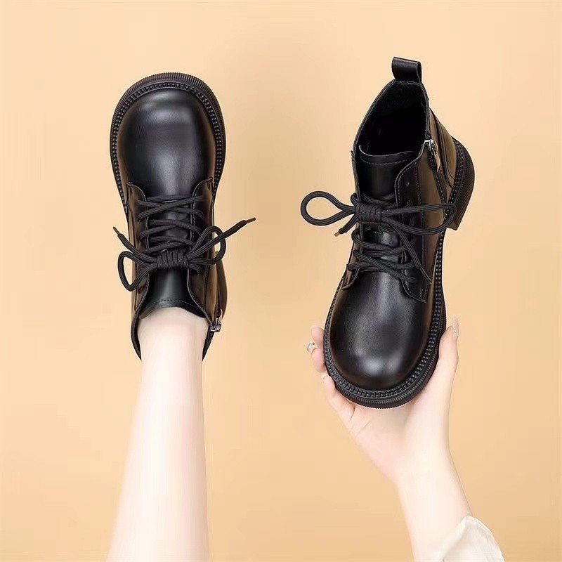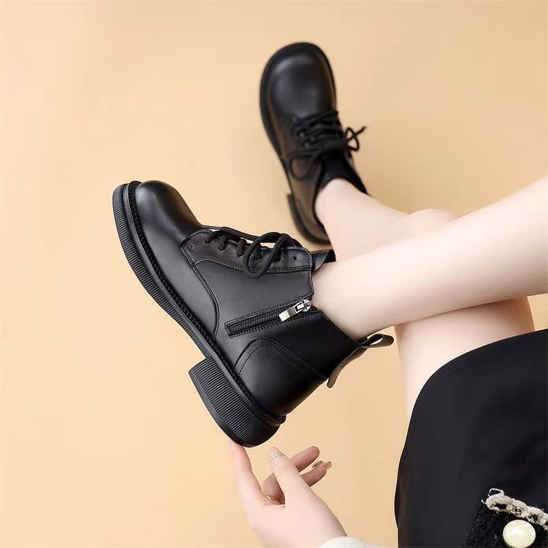 영국 스타일 두꺼운 바닥 마틴 부츠 여성 2024 가을 겨울 새로운 패션 올 매치 기모 쇼트 부츠 클래식 유행 가죽 부츠