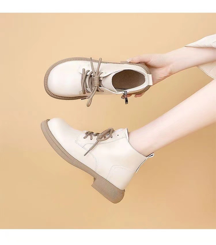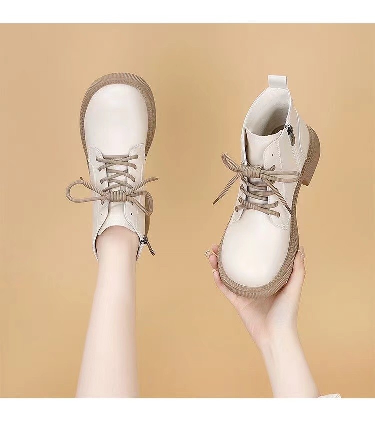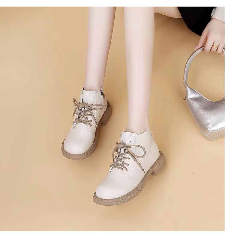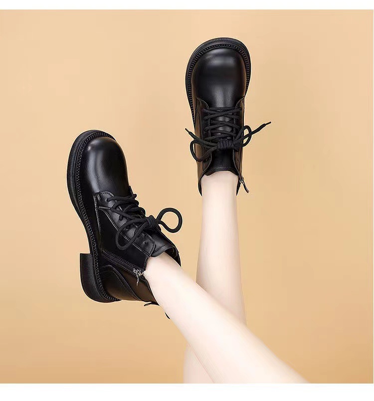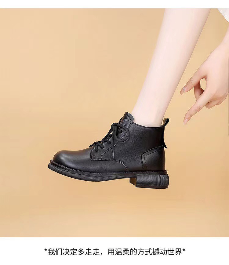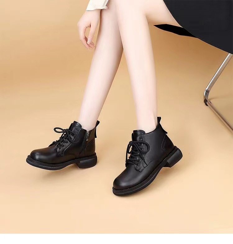 영국 스타일 두꺼운 바닥 마틴 부츠 여성 2024 가을 겨울 새로운 패션 올 매치 기모 쇼트 부츠 클래식 유행 가죽 부츠