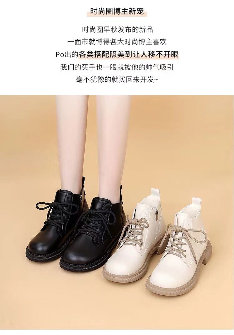 영국 스타일 두꺼운 바닥 마틴 부츠 여성 2024 가을 겨울 새로운 패션 올 매치 기모 쇼트 부츠 클래식 유행 가죽 부츠스토어 가기