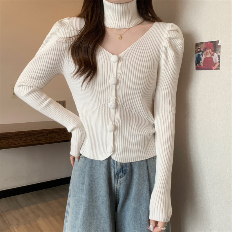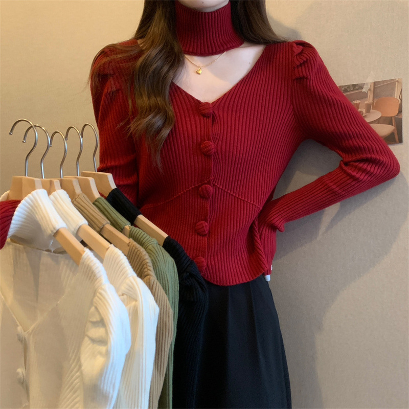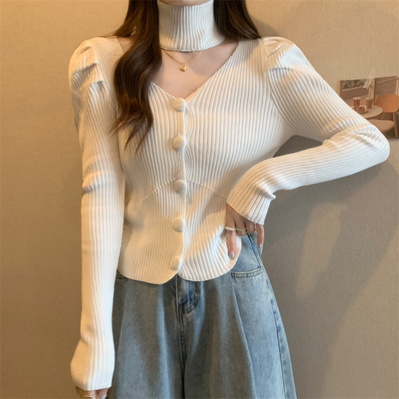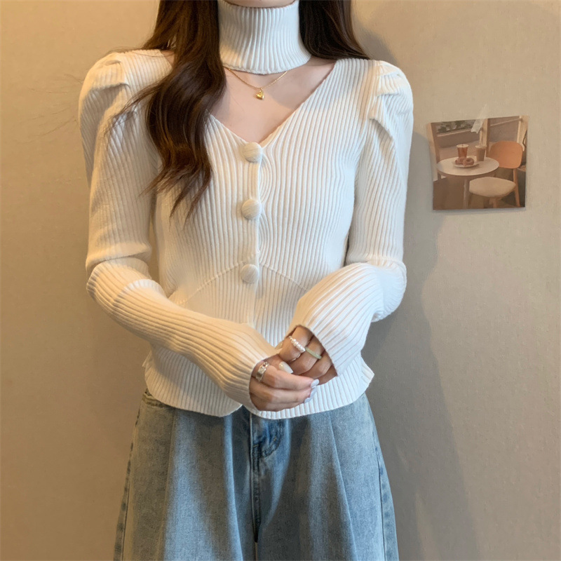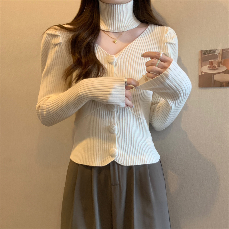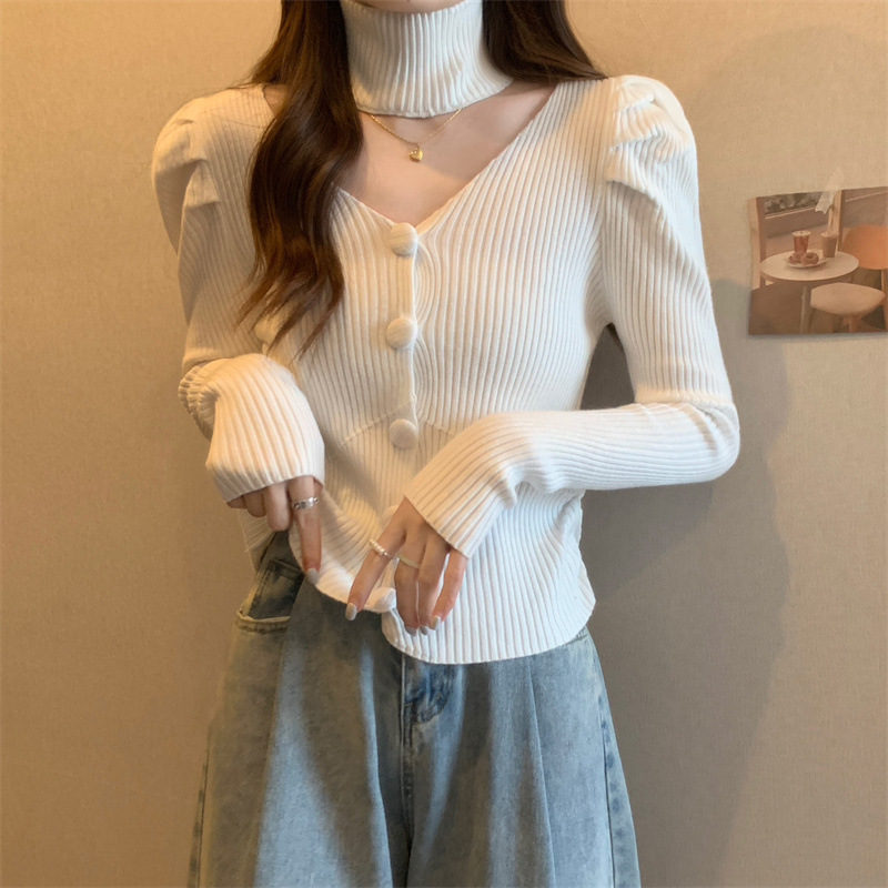 가을과 겨울에 목을 매달린 여성용 긴팔 스웨터 디자인 센스 내부 스웨터 슬림 핏 올 매치 쇼트 탑이있는 새로운베이스 셔츠스토어 가기