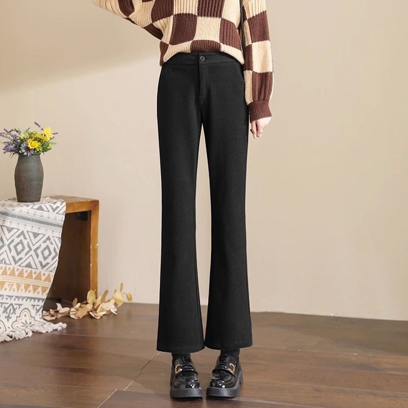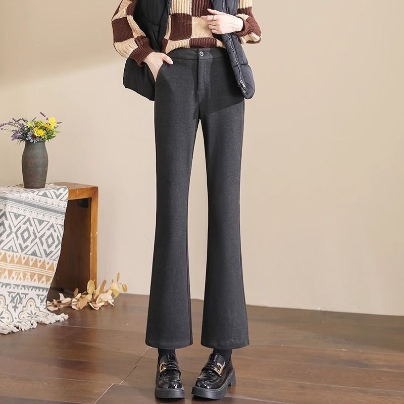 2024 년 가을 겨울 어린이를위한 작은 모직 바지 한국 스타일 데그링 캐주얼 슬리밍 새로운 두꺼운 자른 마이크로 팬츠스토어 가기