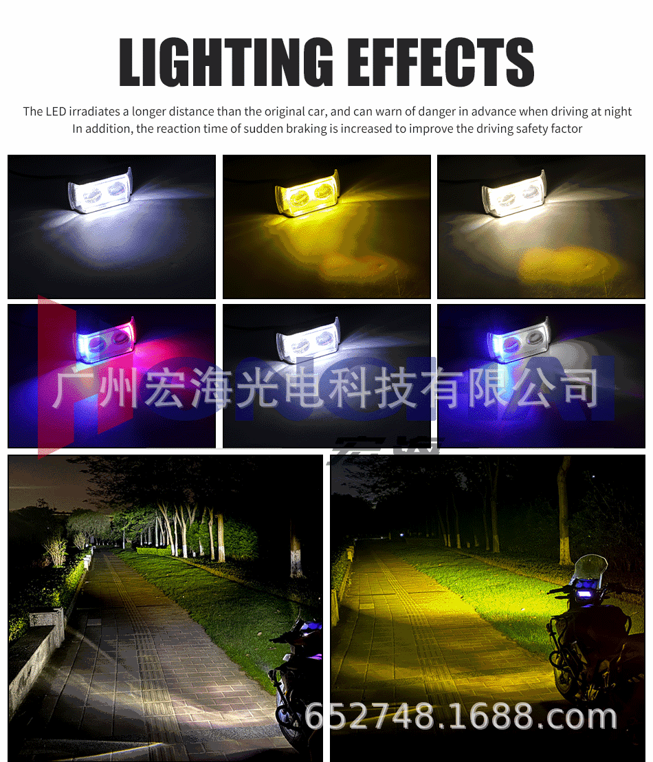 짧은 3 면 발광 램프 오토바이 헤드 라이트 헤드 라이트 LED 램프 외부 수정 빨간색과 파란색 플래시 슈퍼 X20스토어 가기