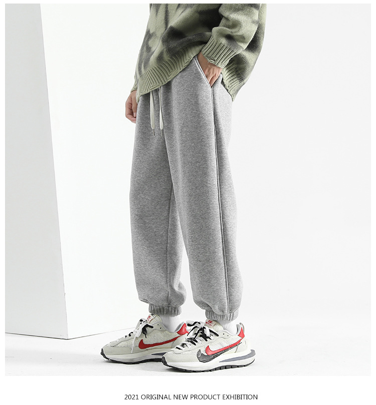 남성용 스웨트팬츠 2025 신상 겨울용 발목 조임 운동복 바지 플리스 안감 남성 바지 루즈핏 가을 겨울 남성 바지 캐주얼 긴바지스토어 가기