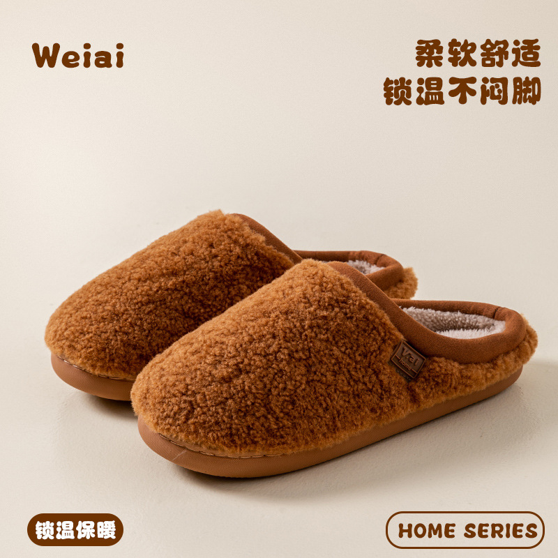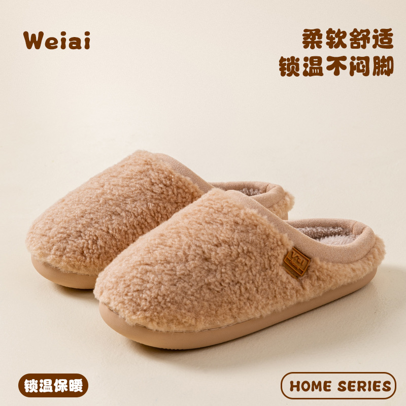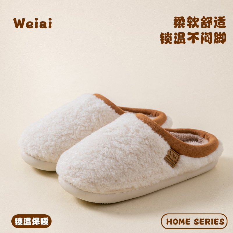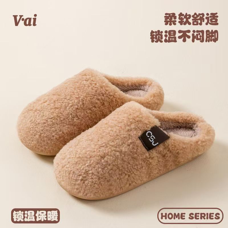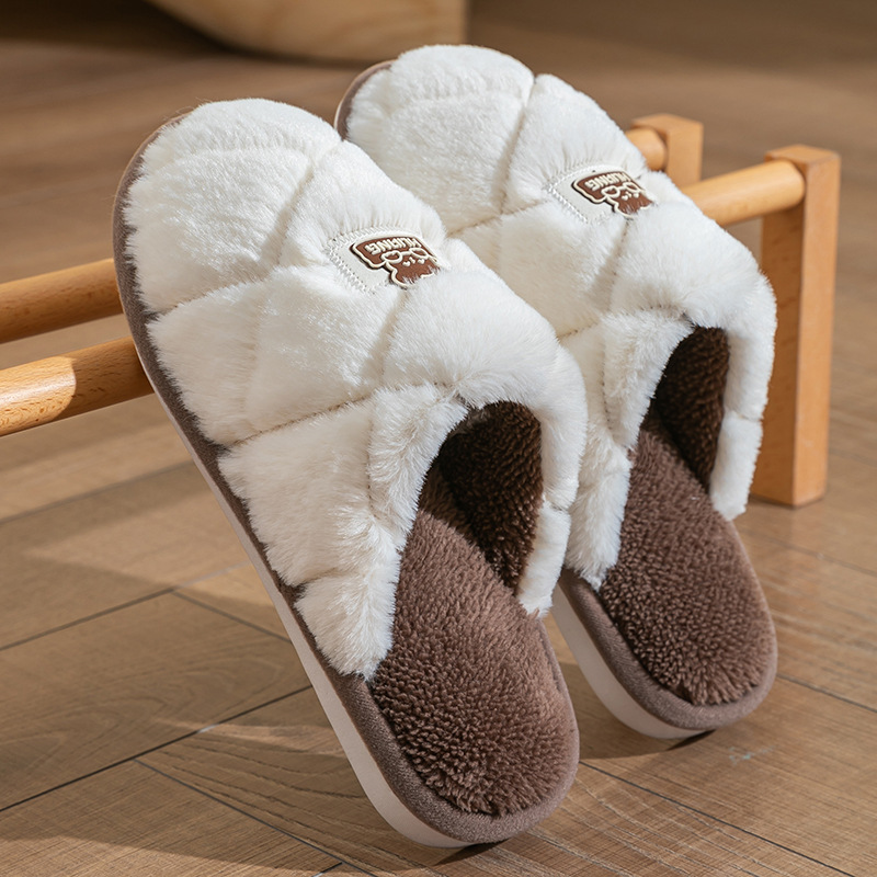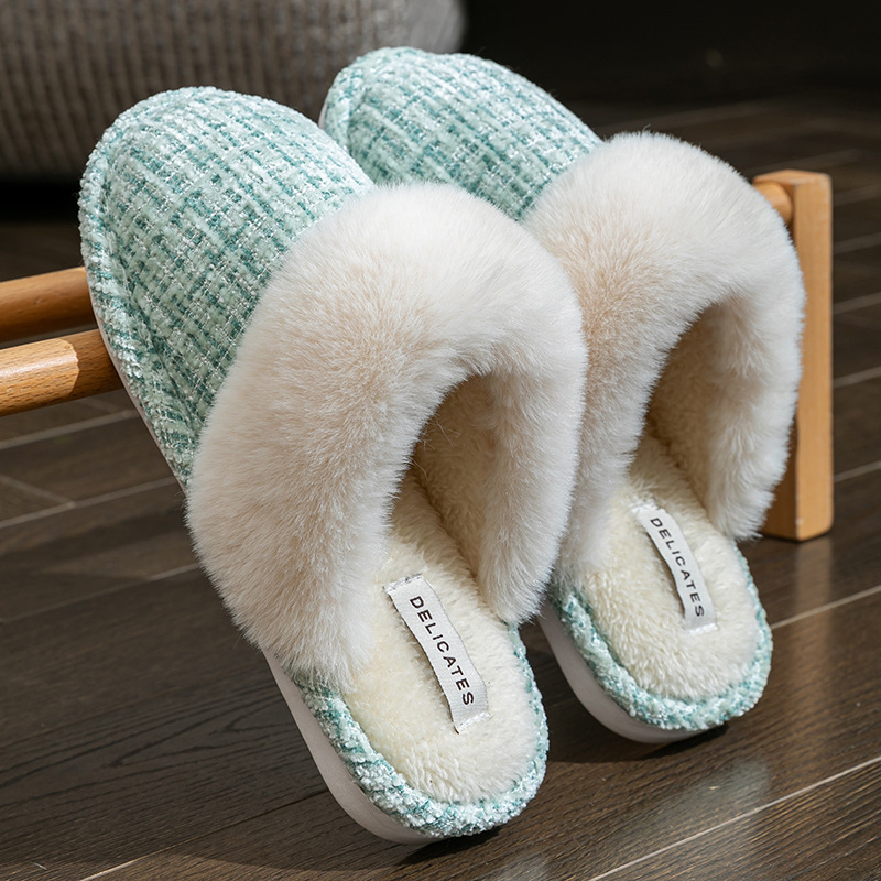여성을위한 Cixi 코튼 슬리퍼 가을 겨울 커플 홈 실내 문 따뜻한 미끄럼 방지 플러시 홈 면화 슬리퍼