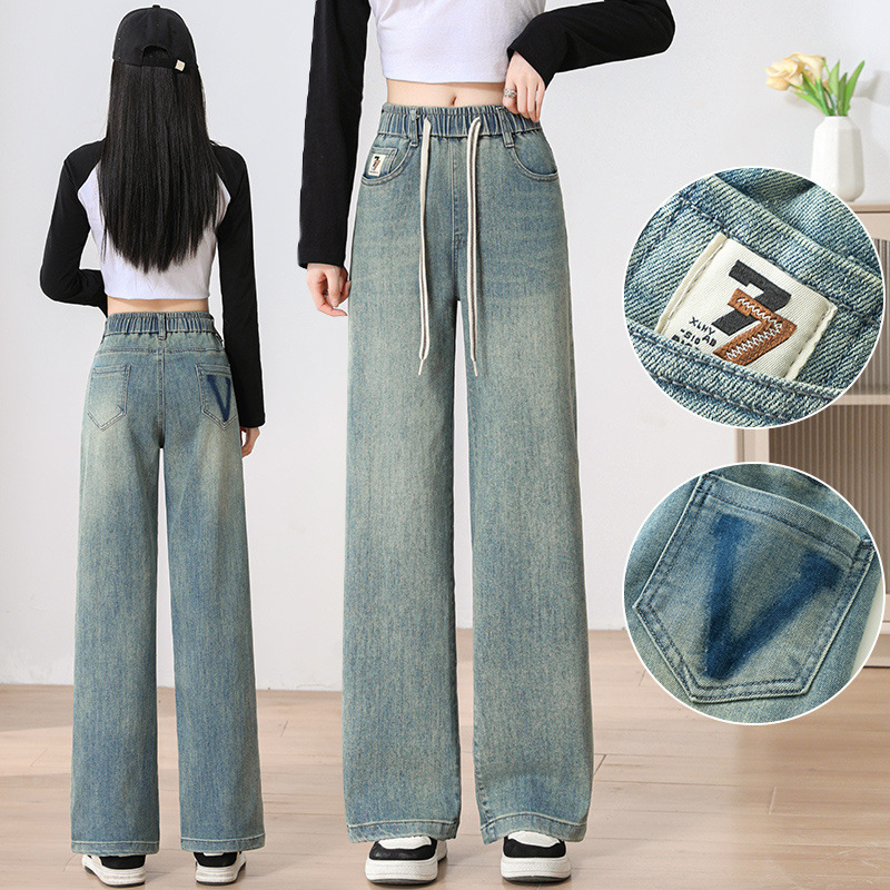 중학생 스트레이트 다리 청바지 여성 봄 가을 여중생 느슨한 허리 캐주얼 복고풍 느슨한 고등학생 바지스토어 가기