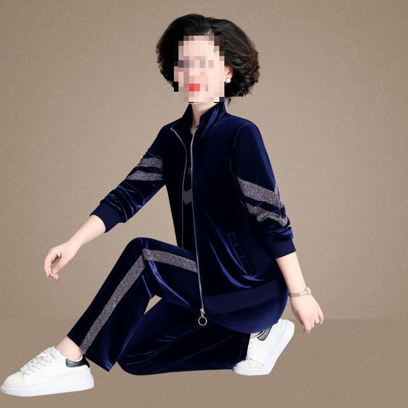 골든 벨벳 스포츠 세트 여성 2023 가을 새로운 고급 어머니의 패션 서양 스타일 플러스 사이즈 연령 감소 3 피스 세트스토어 가기