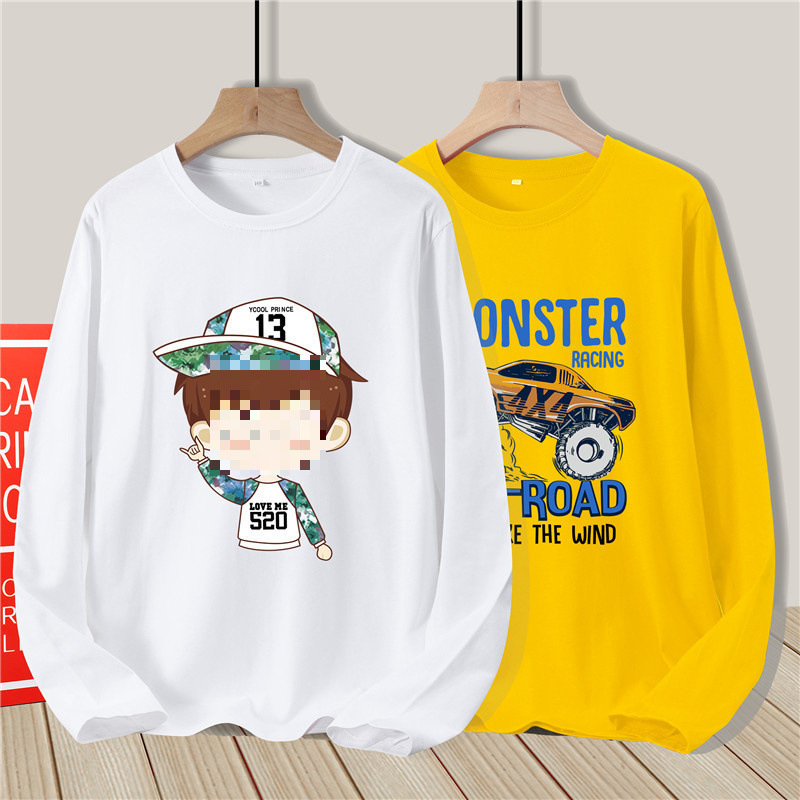 남아의 뚱뚱한 티셔츠 긴팔 가을 착용 뚱뚱한 아이들의 느슨한 플러스 사이즈 면 긴 T 중간 및 큰 아이들의 뚱뚱한 소년 만화 탑스토어 가기