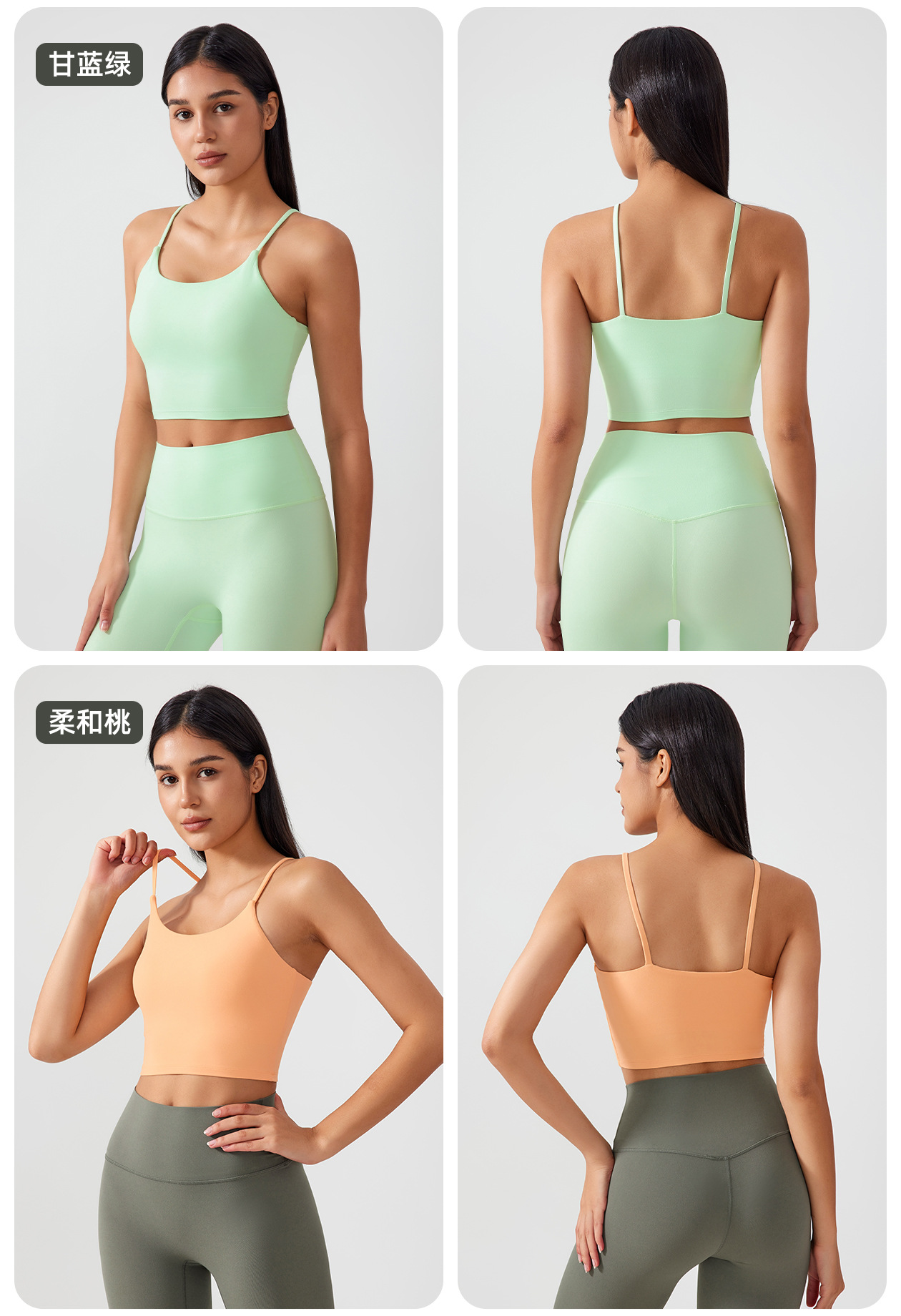 새로운 알몸 피부 친화적 인 스포츠 슬링 아름다운 등 브래지어 충격 방지 모임 컵 피트니스 요가 조끼 AG002