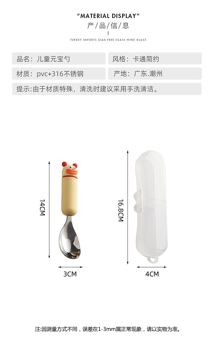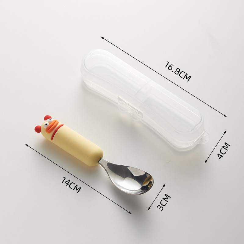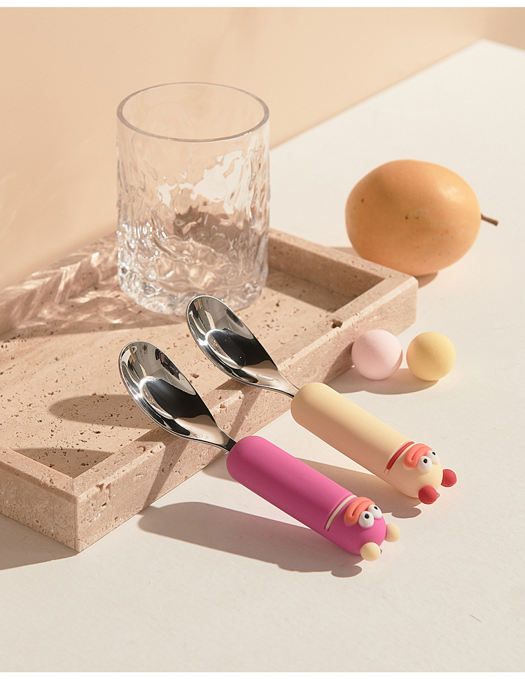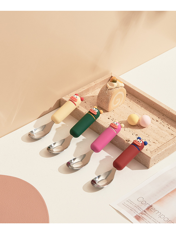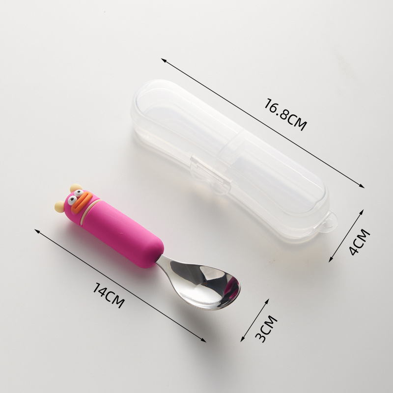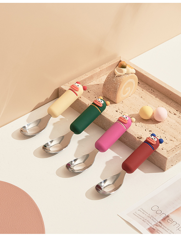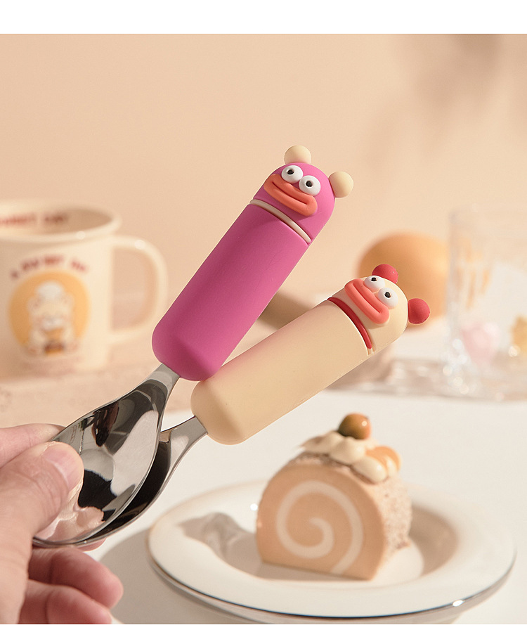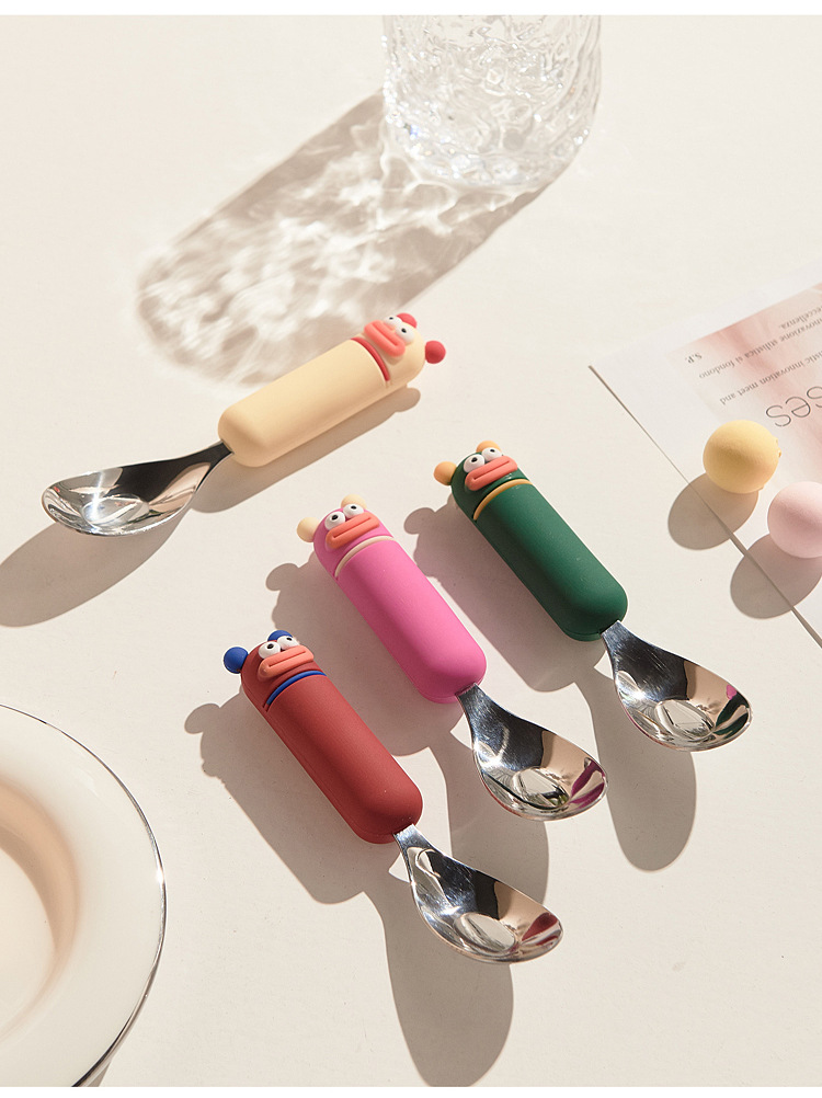 새로운 귀여운 만화 316 스테인레스 스틸 스푼 창조적 인 안티 스케일링 소프트 핸들 실버 잉곳 스푼 고가의 어린이 숟가락