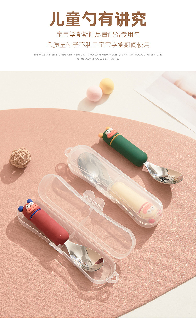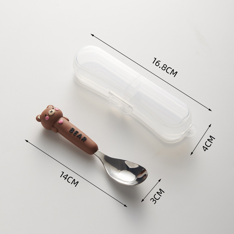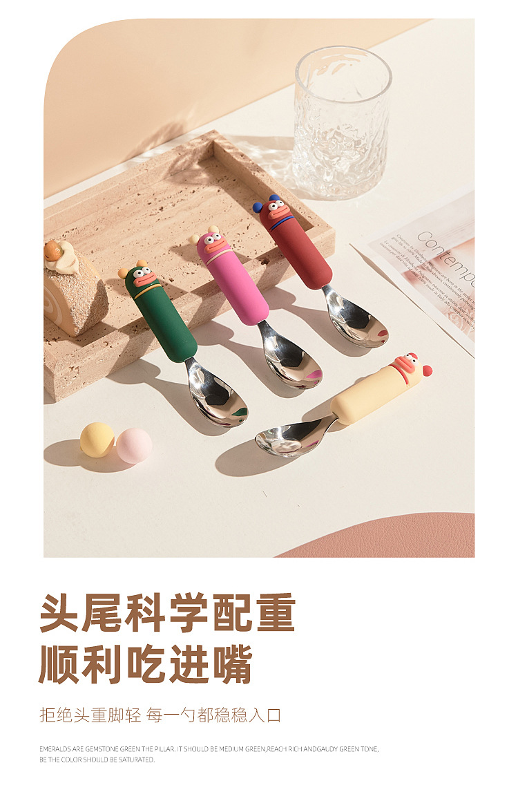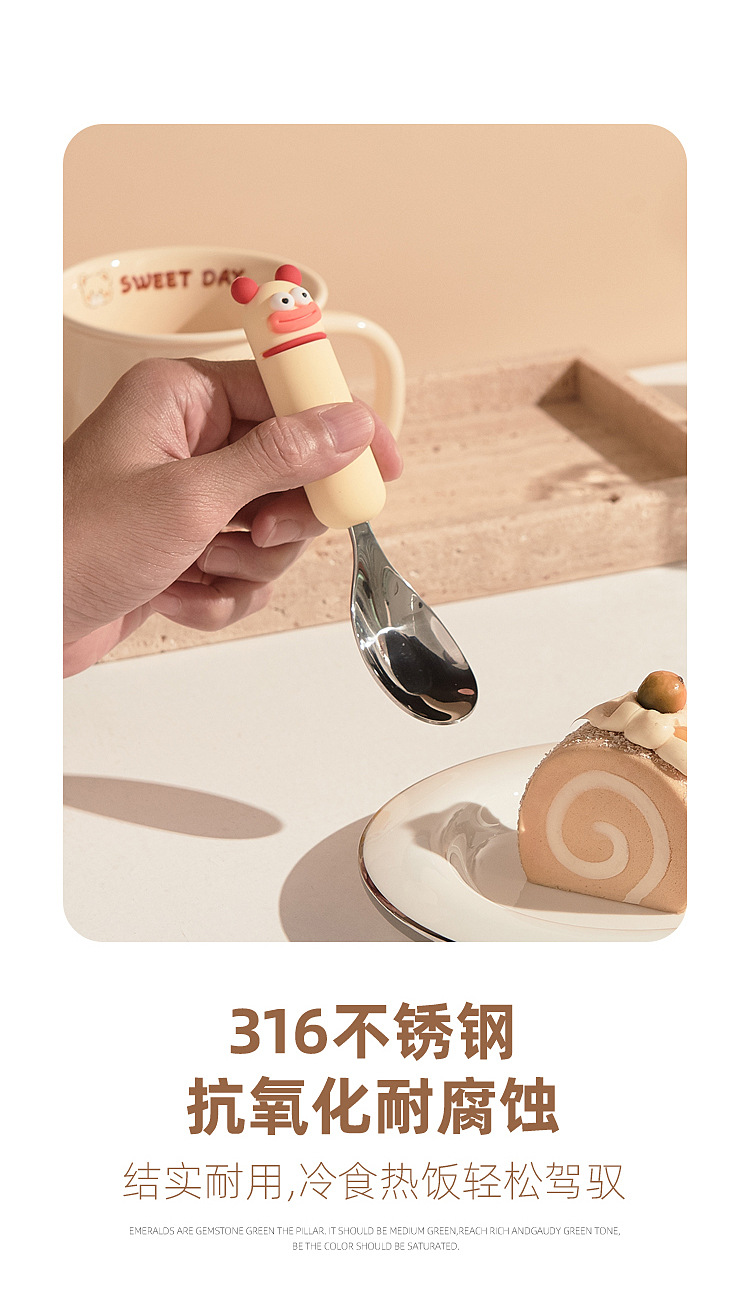 새로운 귀여운 만화 316 스테인레스 스틸 스푼 창조적 인 안티 스케일링 소프트 핸들 실버 잉곳 스푼 고가의 어린이 숟가락스토어 가기