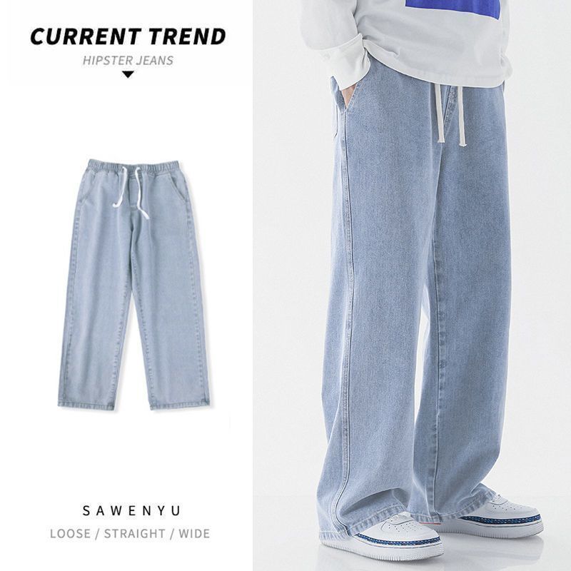 올 매치 얇은 봄과 여름 유행 남자 바지 청바지 긴 바지 다리 홍콩 스타일 넓은 느슨한 캐주얼 스트레이트스토어 가기
